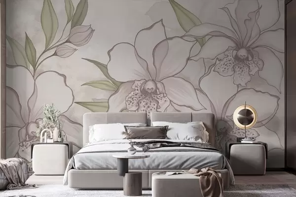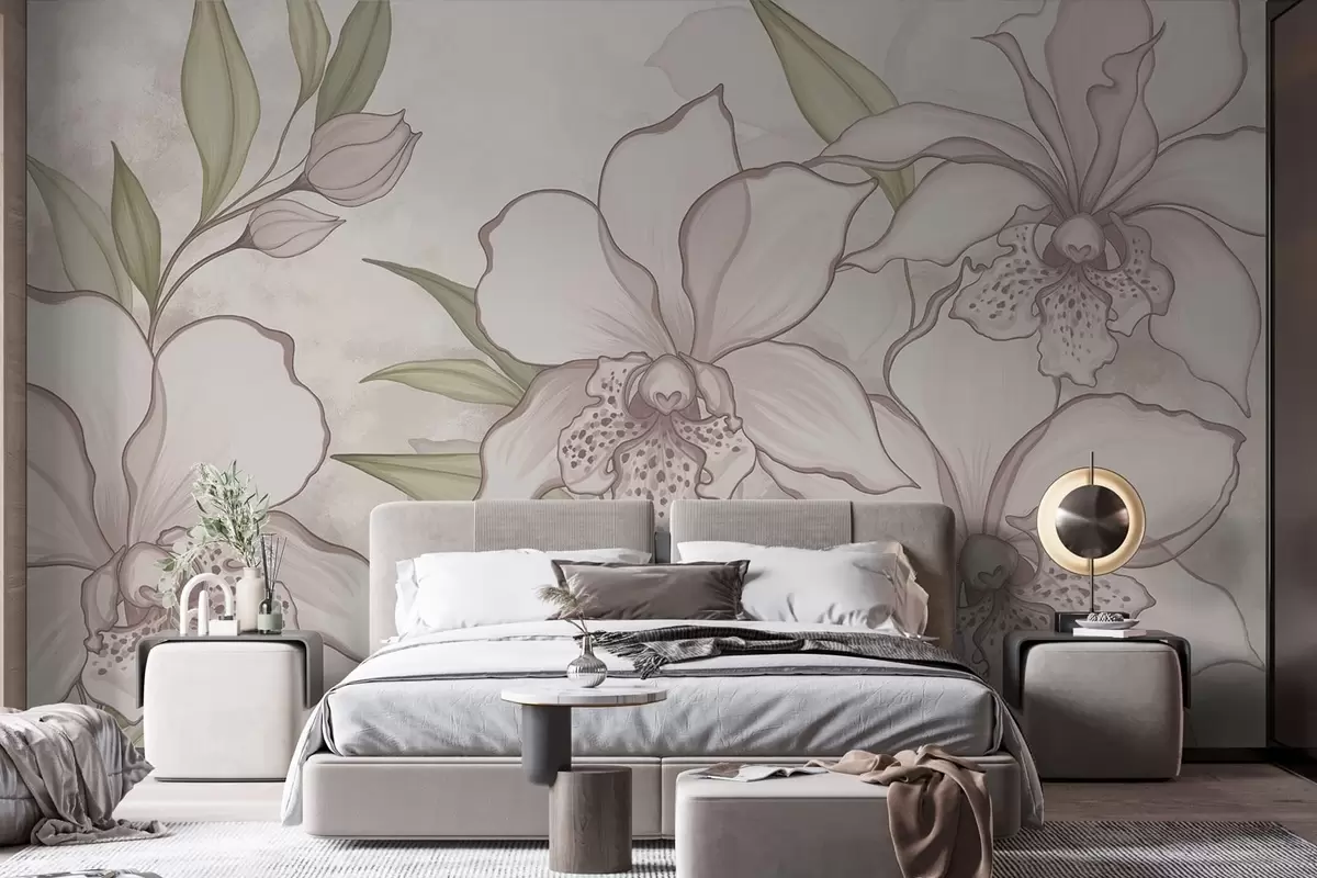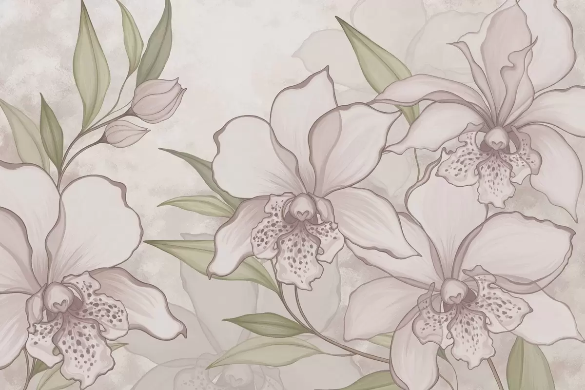 Fototapeten Illustration von blassen Orchideen mit Blättern auf beigem Hintergrund Nr. w05117