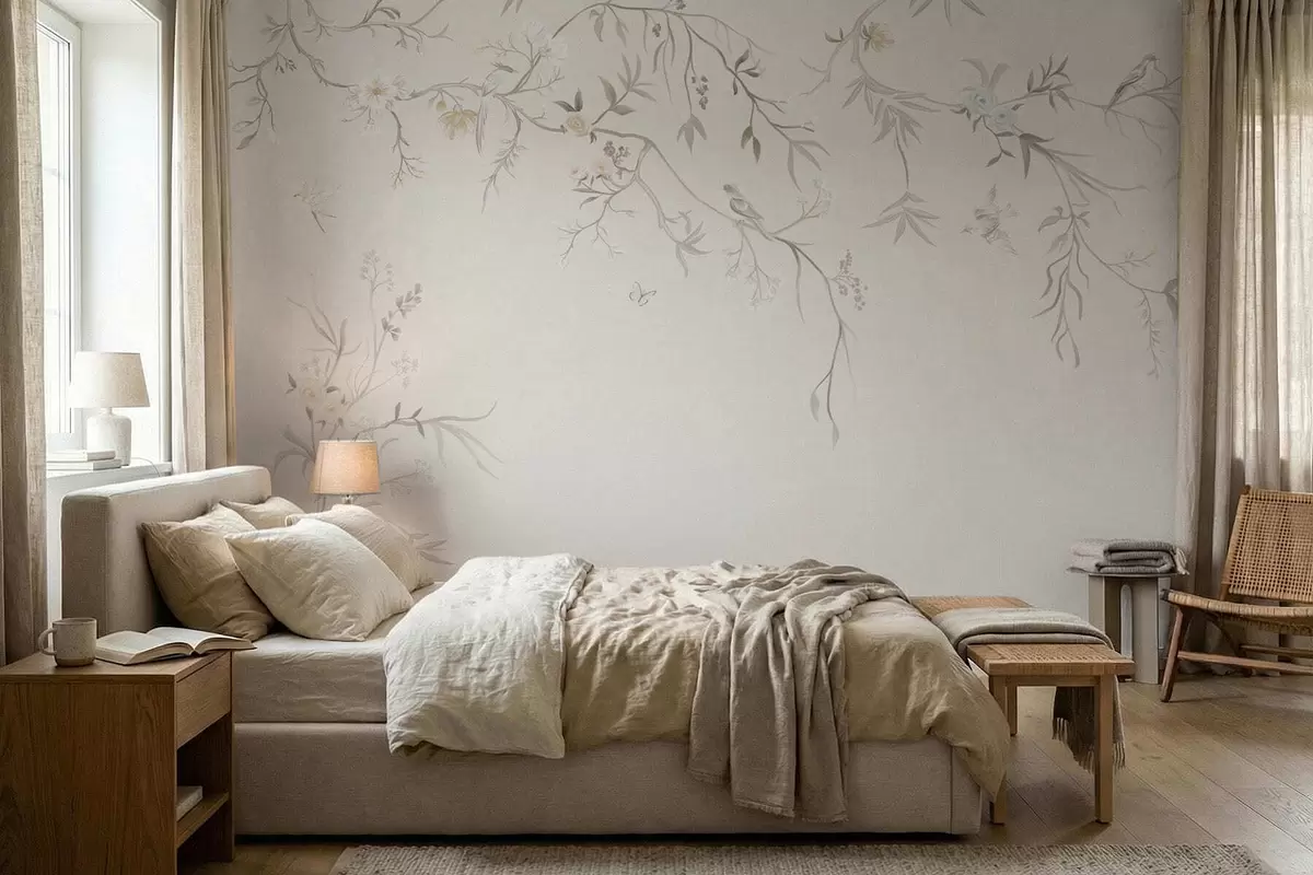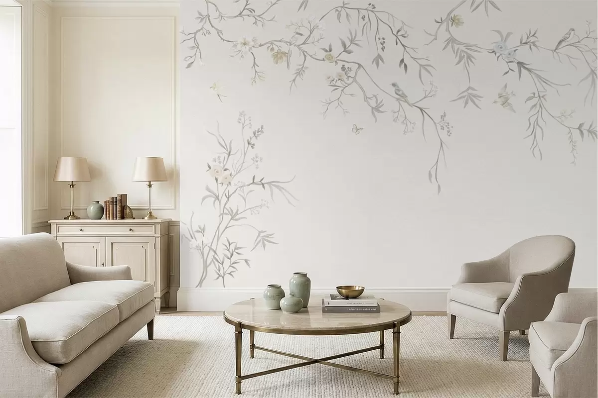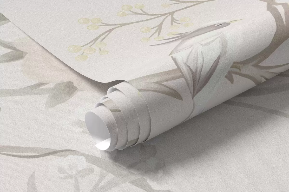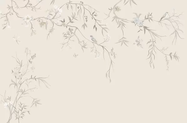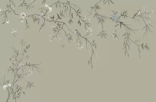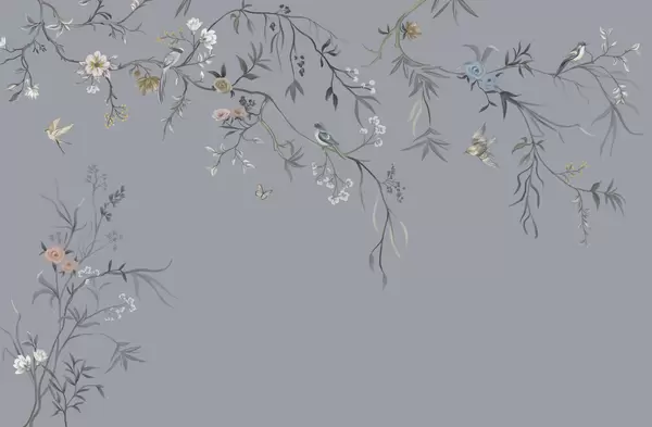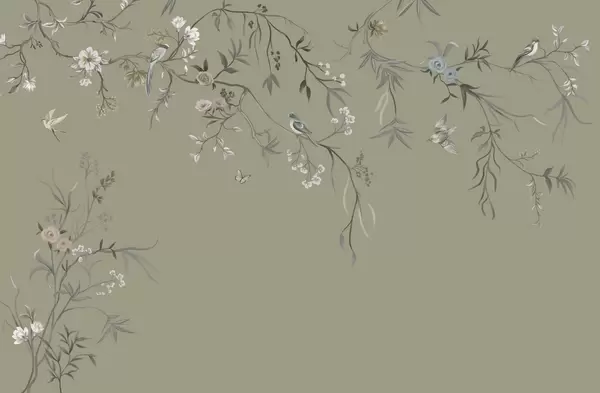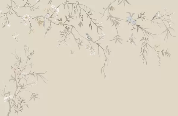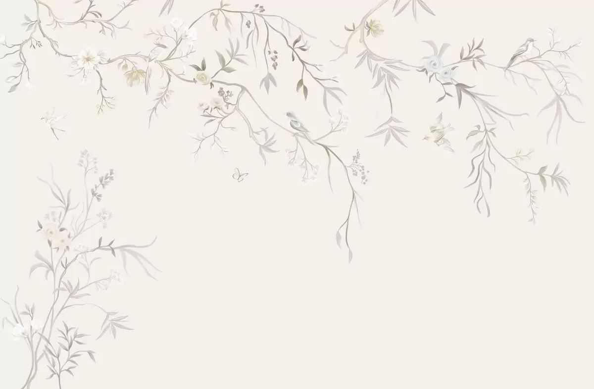 Fototapeten Zarte Blumen und Vögel auf Kreidehintergrund Nr. w05127
