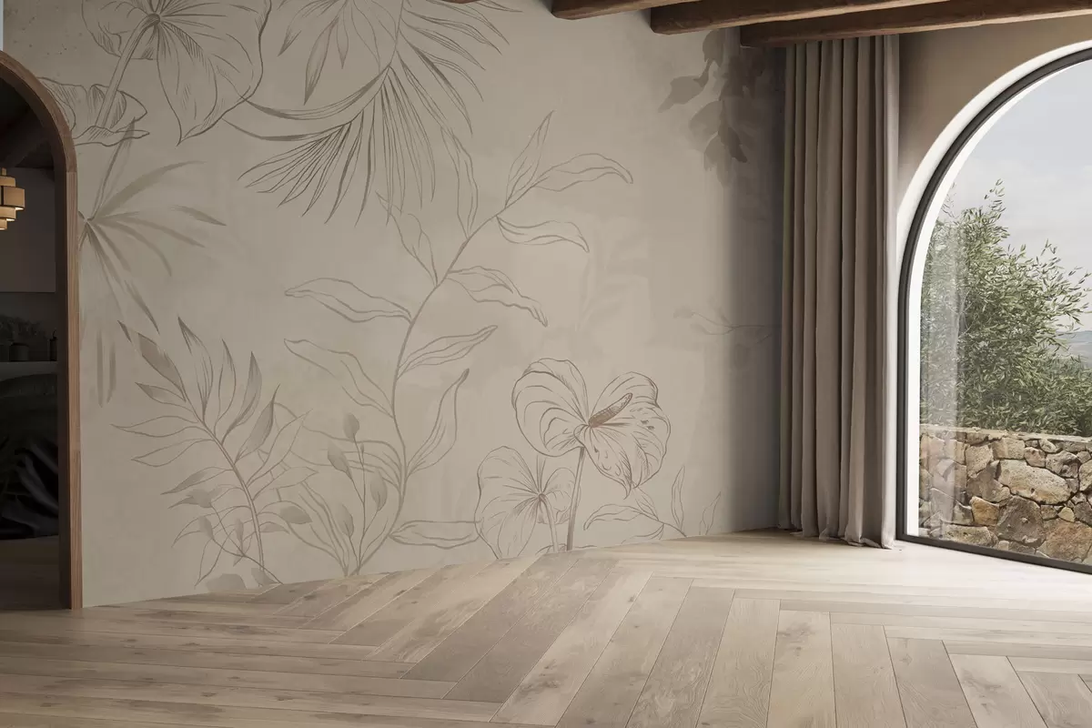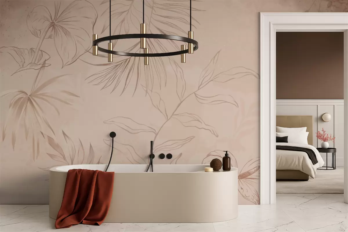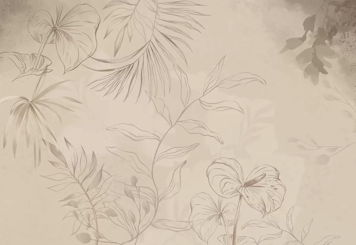 Fototapeten Lineare Pflanzen auf strukturiertem beigem Hintergrund Nr. w05128