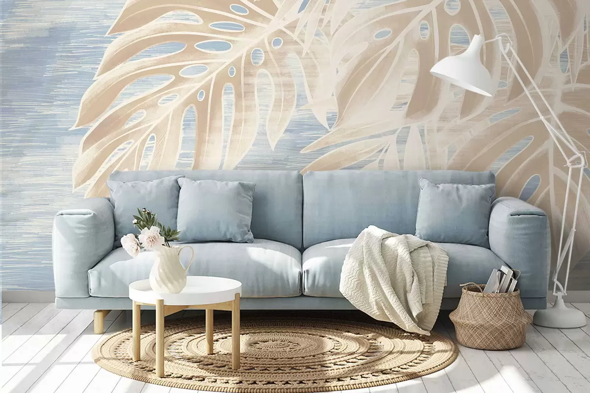 Fototapeten Abstrakte Blätter in warmen Beigetönen auf hellem Hintergrund Nr. w05130