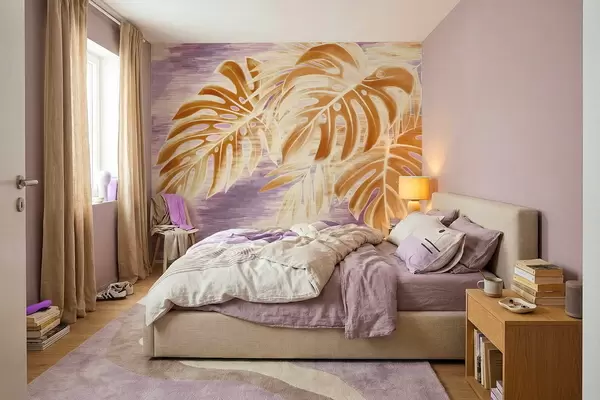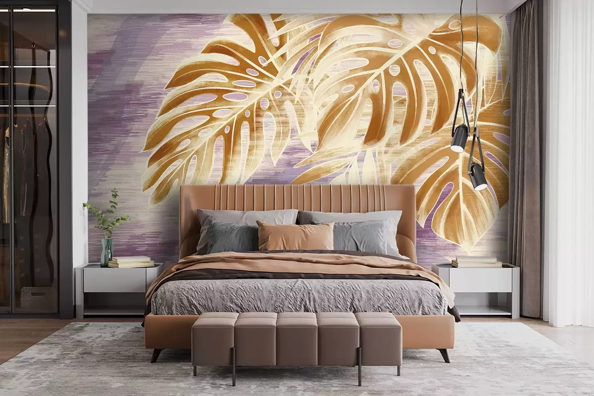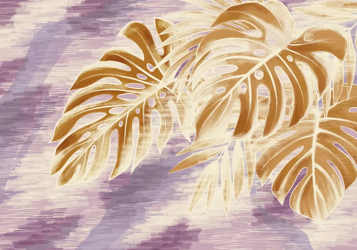 Fototapeten Blätter in warmen Orangetönen auf violettem Hintergrund Nr. w05130v2