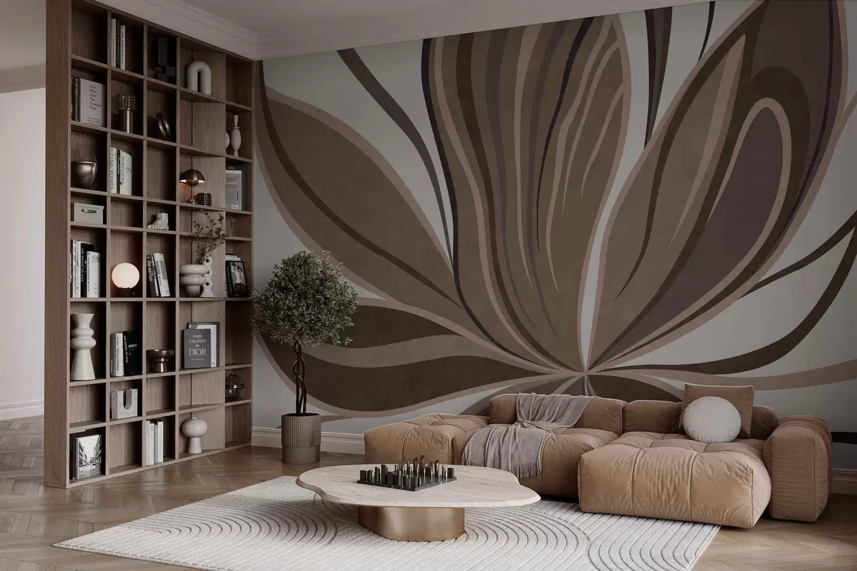 Fototapeten Stilisierte Blume mit fließenden Linien in Brauntönen Nr. w05147