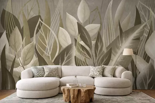 Fototapeten Abstrakte Blätter in Beige- und Grüntönen Nr. w05148