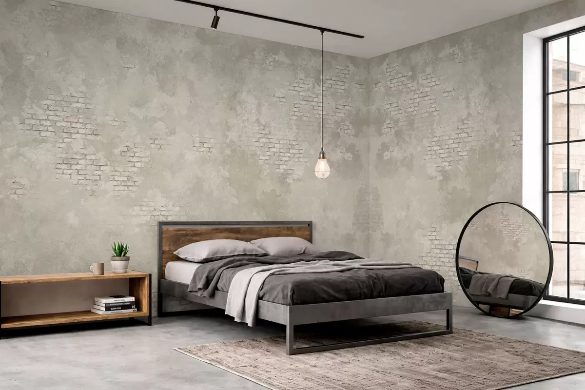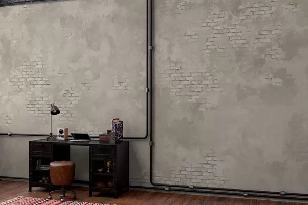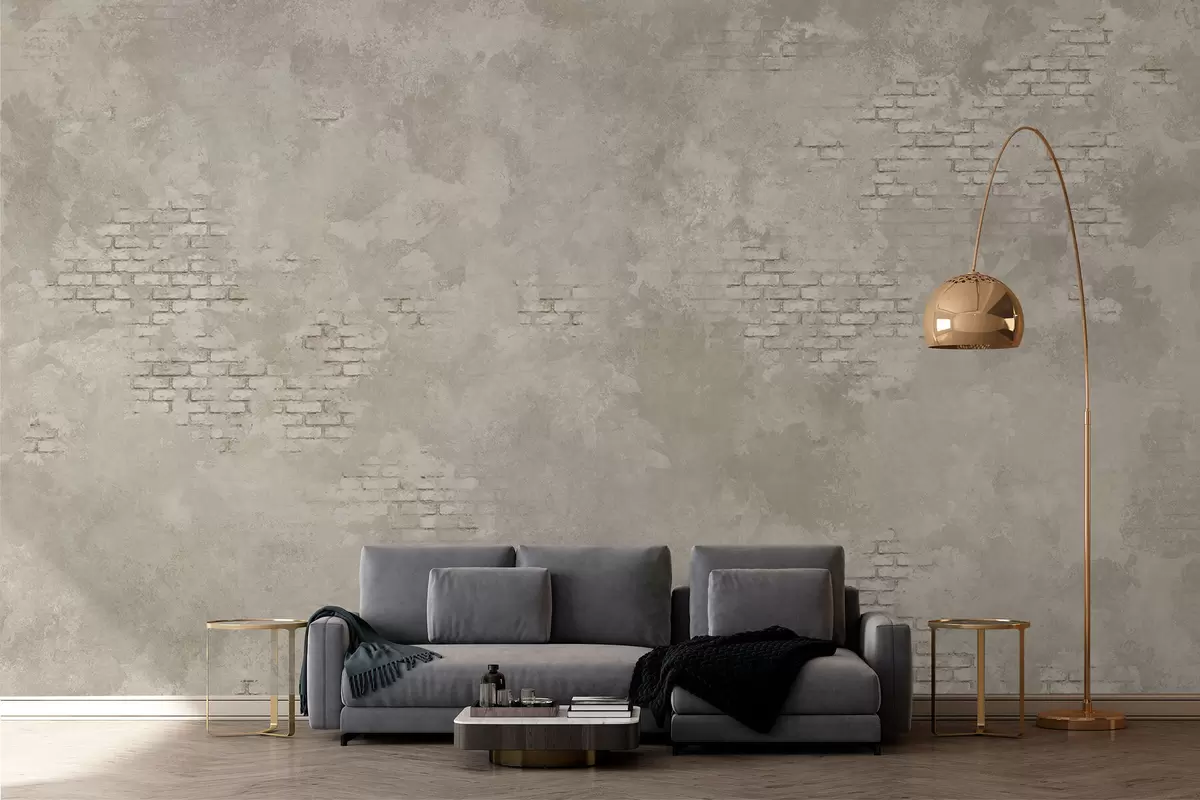 Fototapeten Leichter Putz im Grunge-Stil mit freiliegenden Ziegelstellen Nr. w05161v1