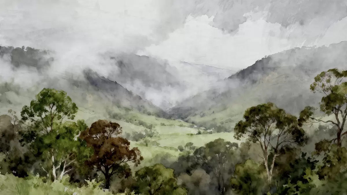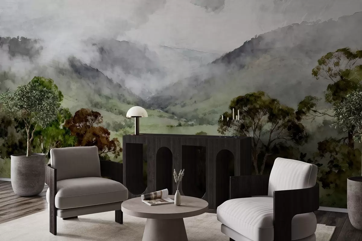 Fototapeten Gemalte Landschaft im Nebel Nr. w05185