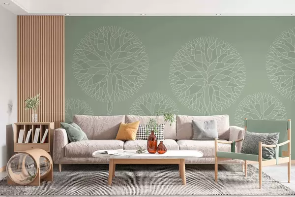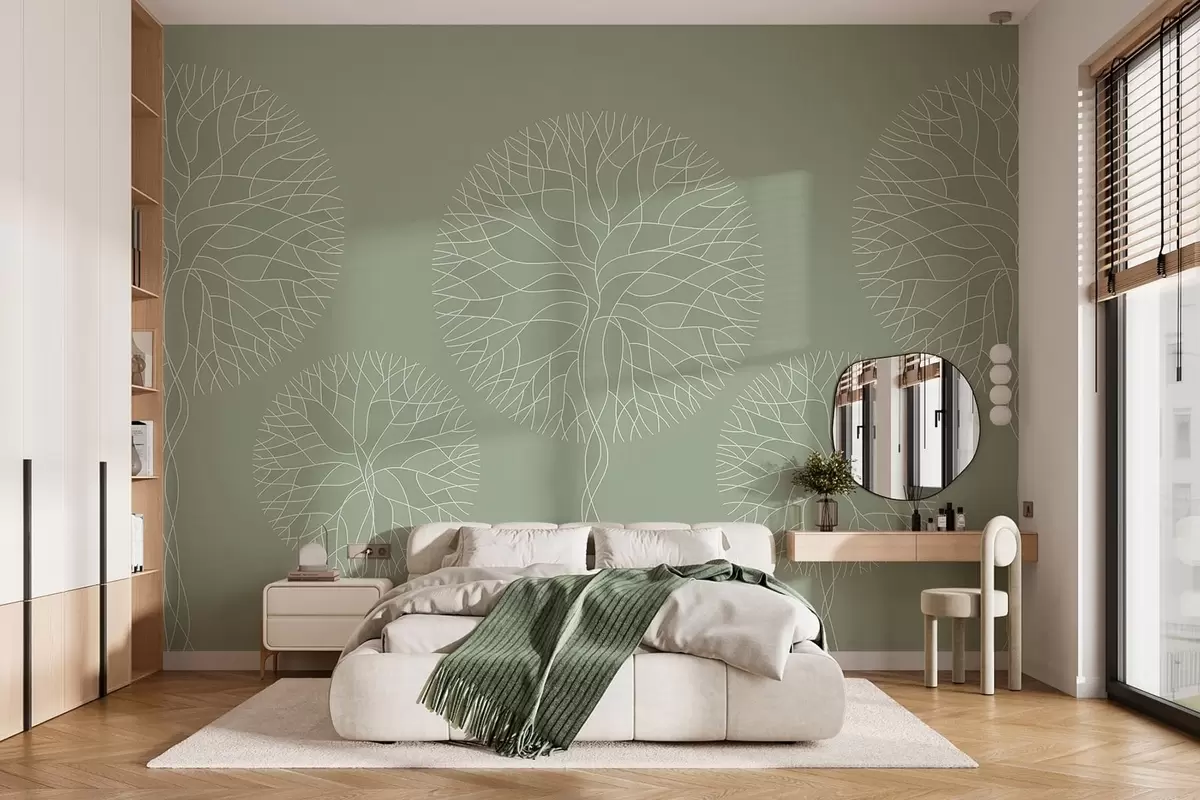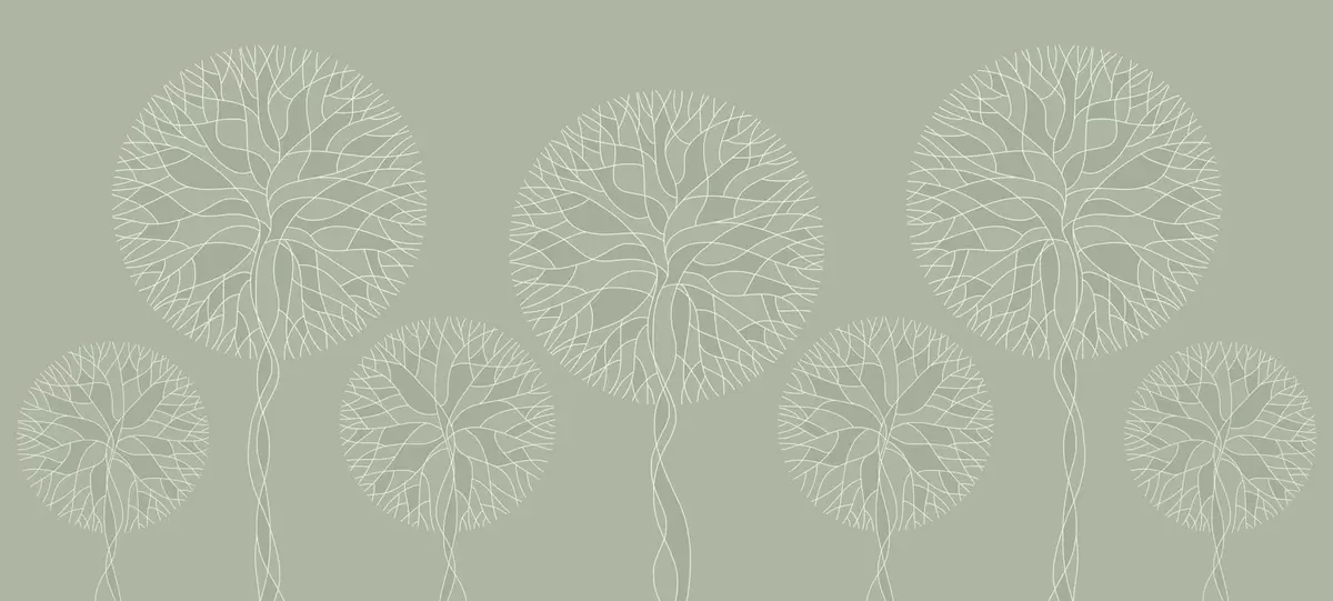 Fototapeten Fantasievolle lineare Bäume mit üppigen Kronen in hellgrünen Farbtönen Nr. w05213v6