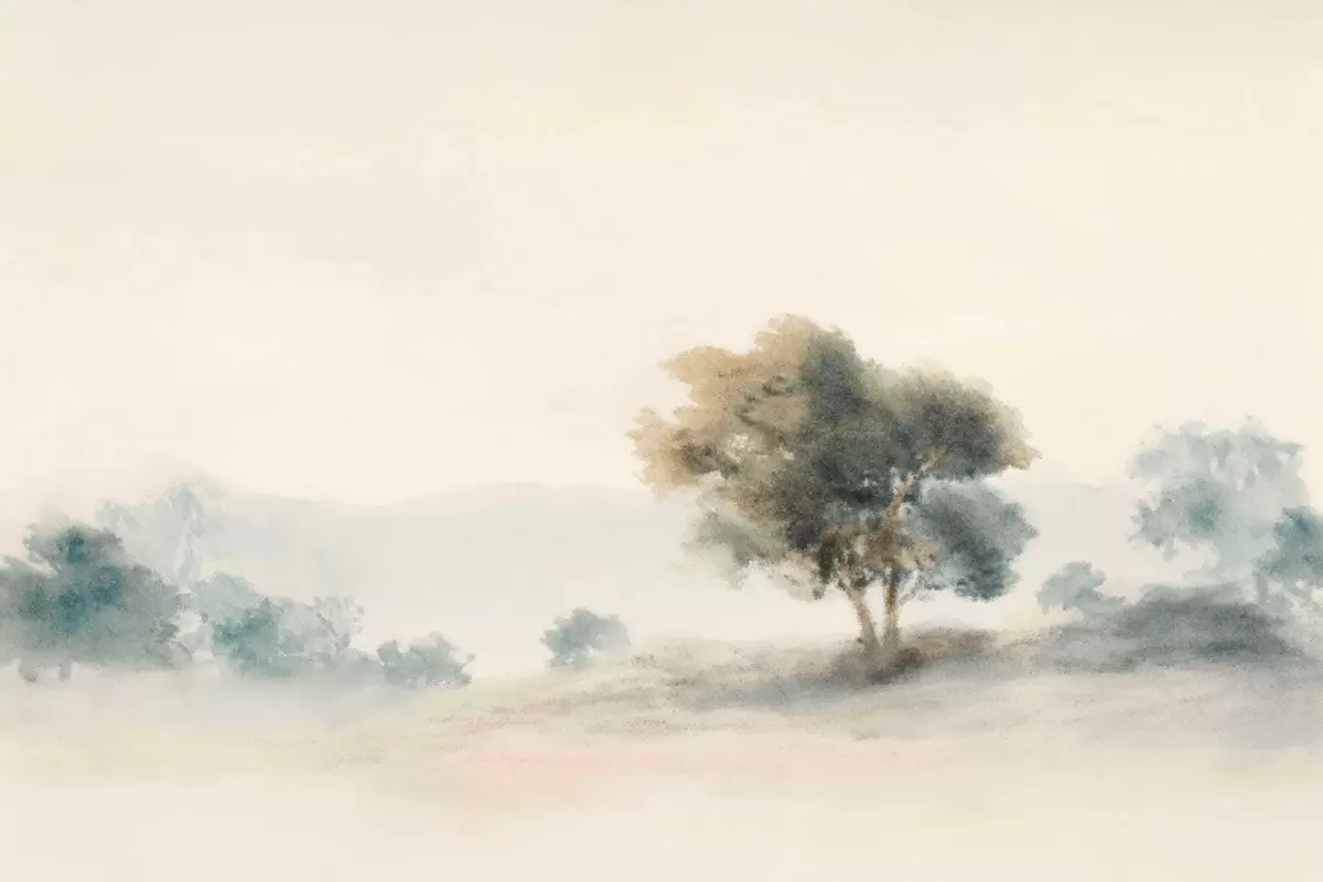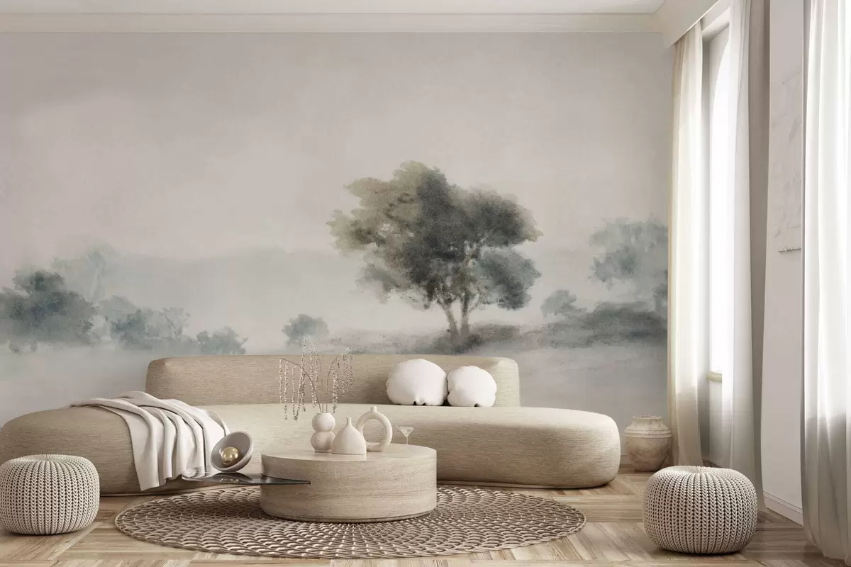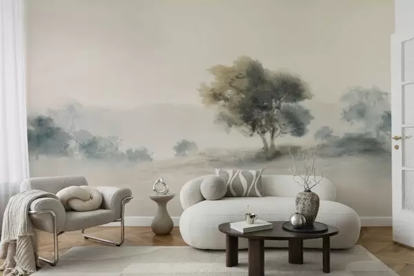 Fototapeten Ruhige Landschaft mit einem Baum und sanften, verschwommenen Formen Nr. w05223v1