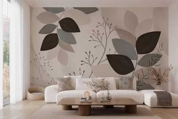 Fototapeten Blätter und Gräser in Beige-, Grau- und Brauntönen Nr. w05237