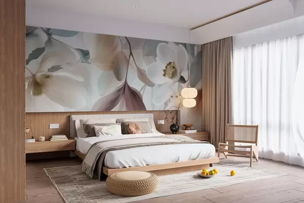 Fototapeten eine zarte Komposition aus Blumen und Blättern in Pastelltönen Nr. w05240
