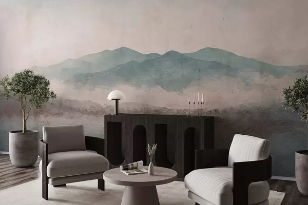 Fototapeten Grunge-gemalte Berglandschaft Nr. w05241