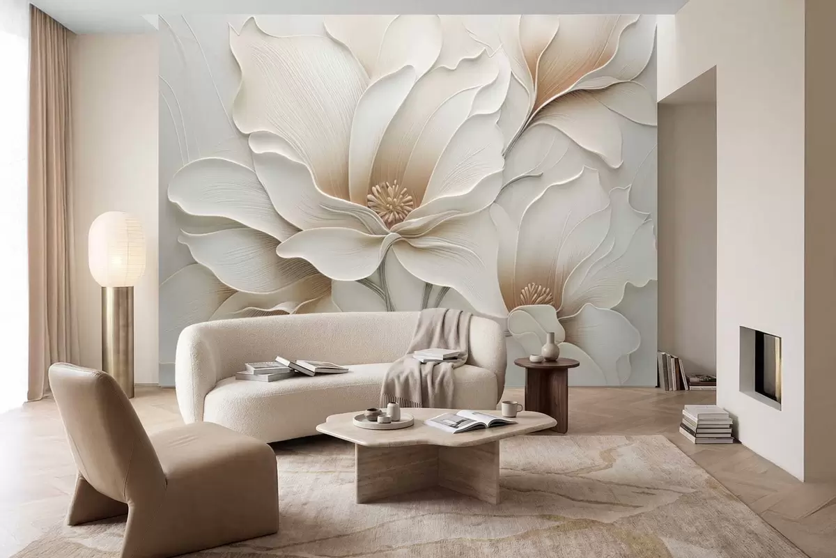 Fototapeten Geprägte beige Blumenrelief-Nahaufnahme Nr. w05269