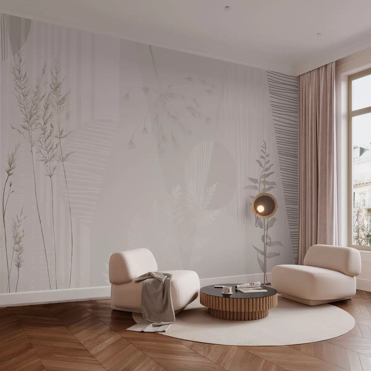 Fototapeten Minimalistische Komposition mit Gräsern und Formen Nr. w05318