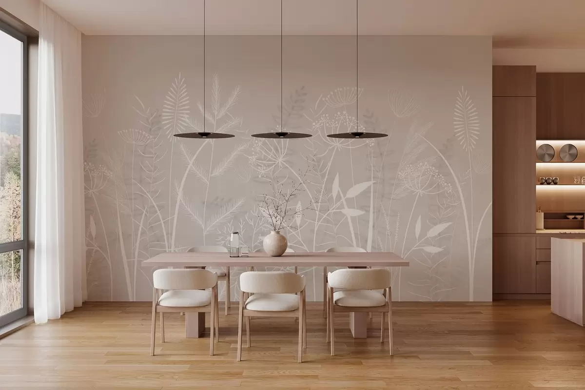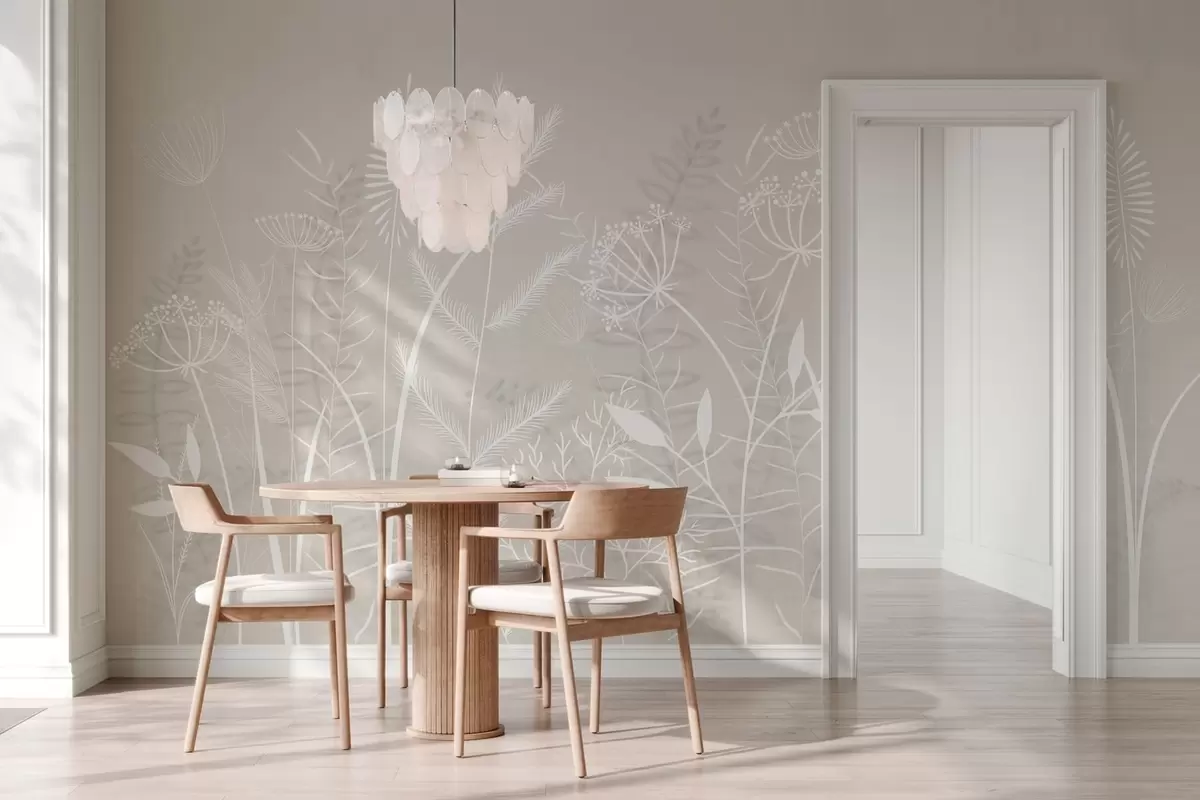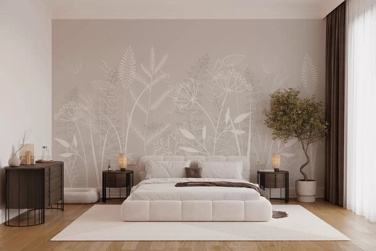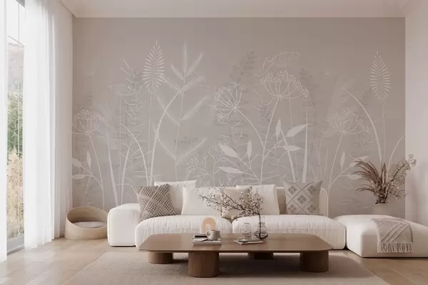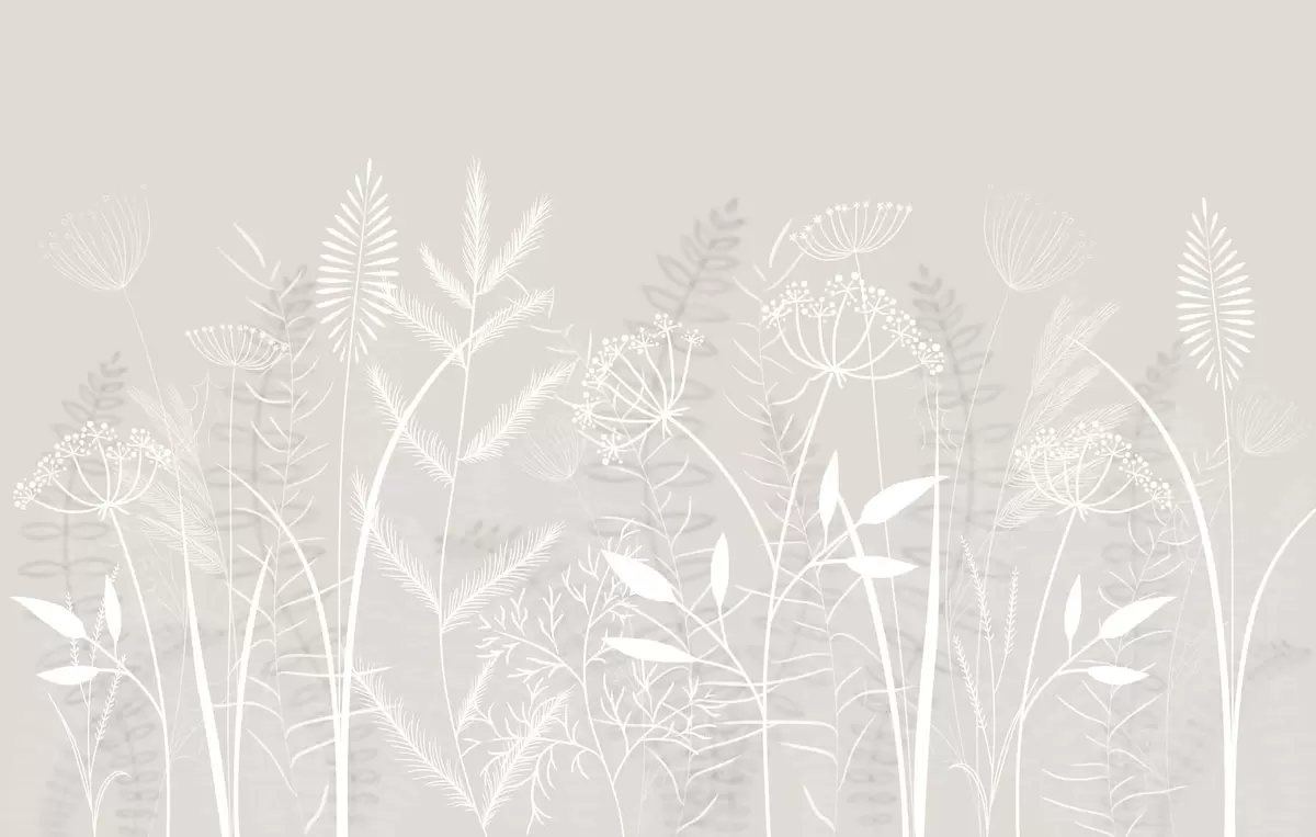 Fototapeten zarte, handgemalte Wildgräser und Blumen vor einem beigen Hintergrund Nr. w05383v1