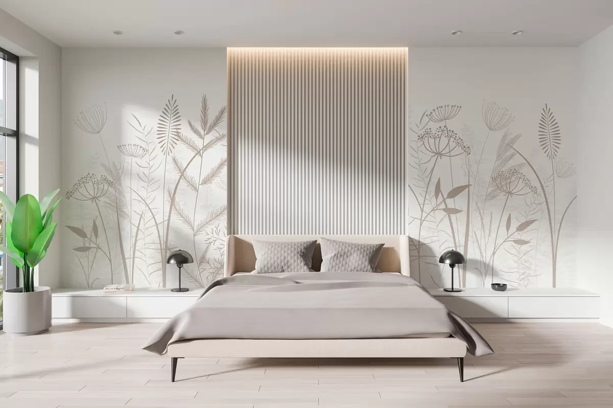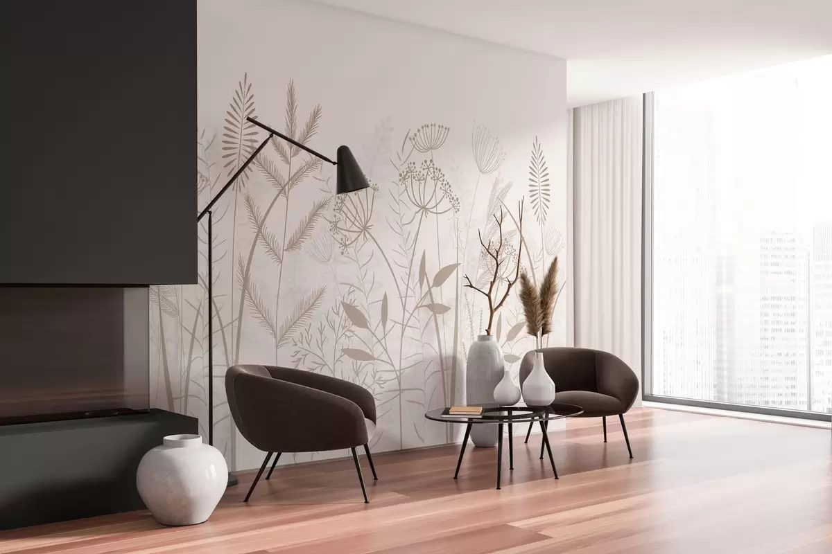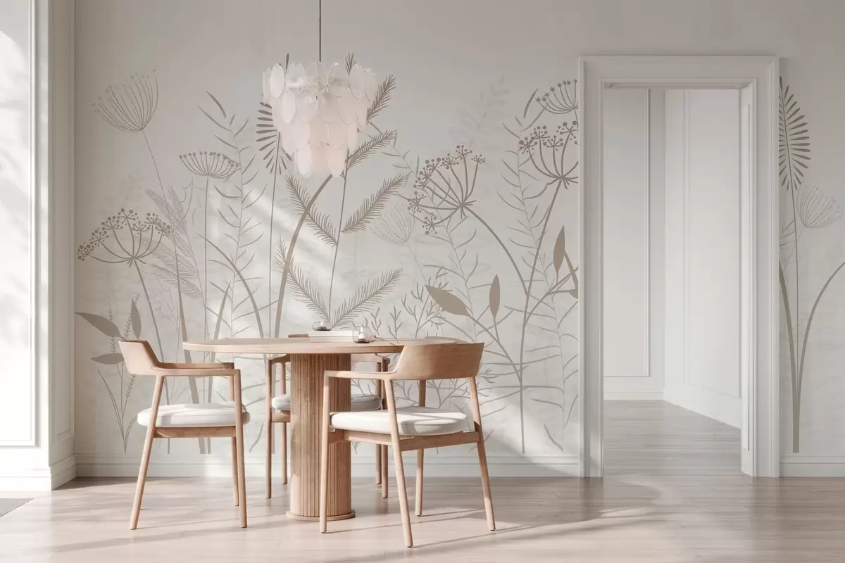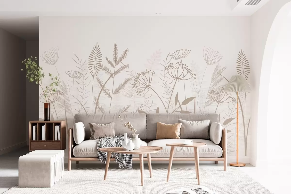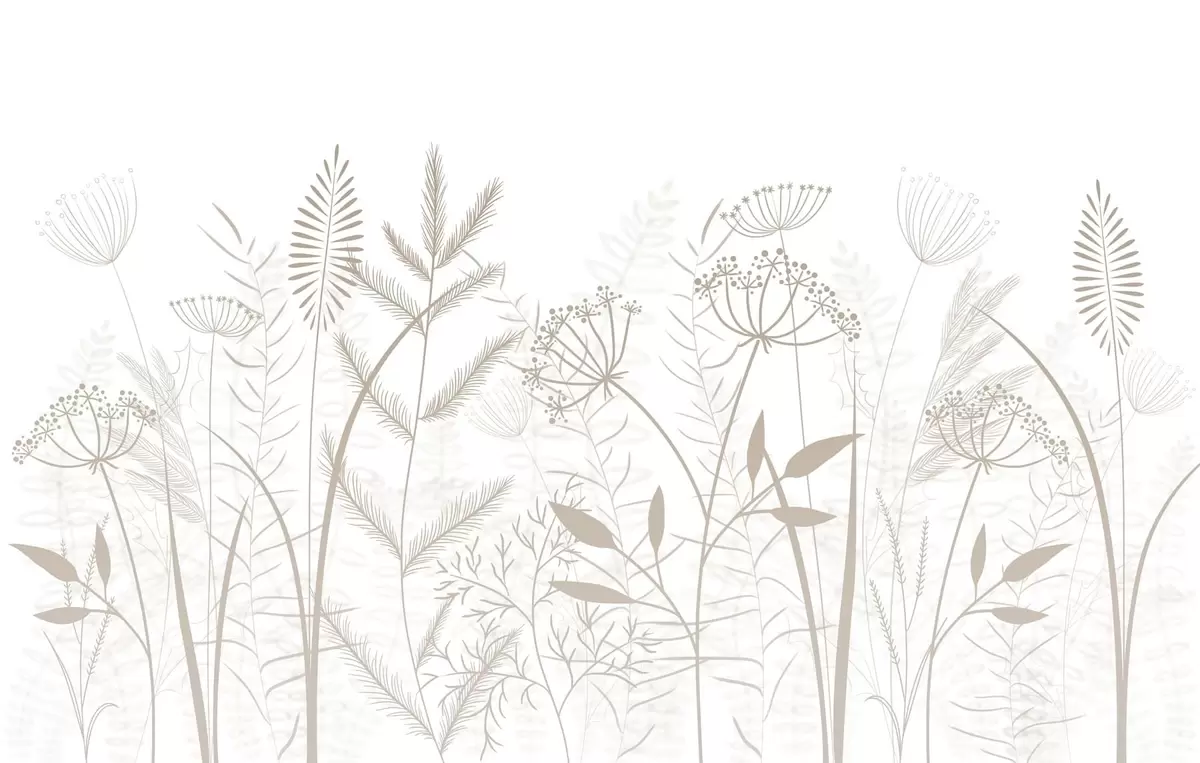 Fototapeten zarte, handgemalte Wildgräser und Blumen vor weißem Hintergrund Nr. w05383v2