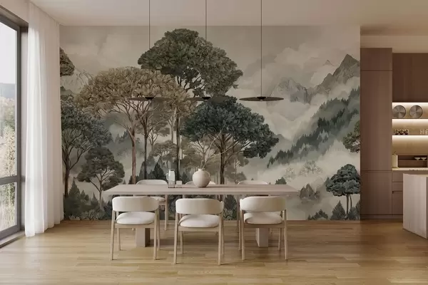 Fototapeten Berglandschaft mit Wald in sanften Farbtönen Nr. w05410v1