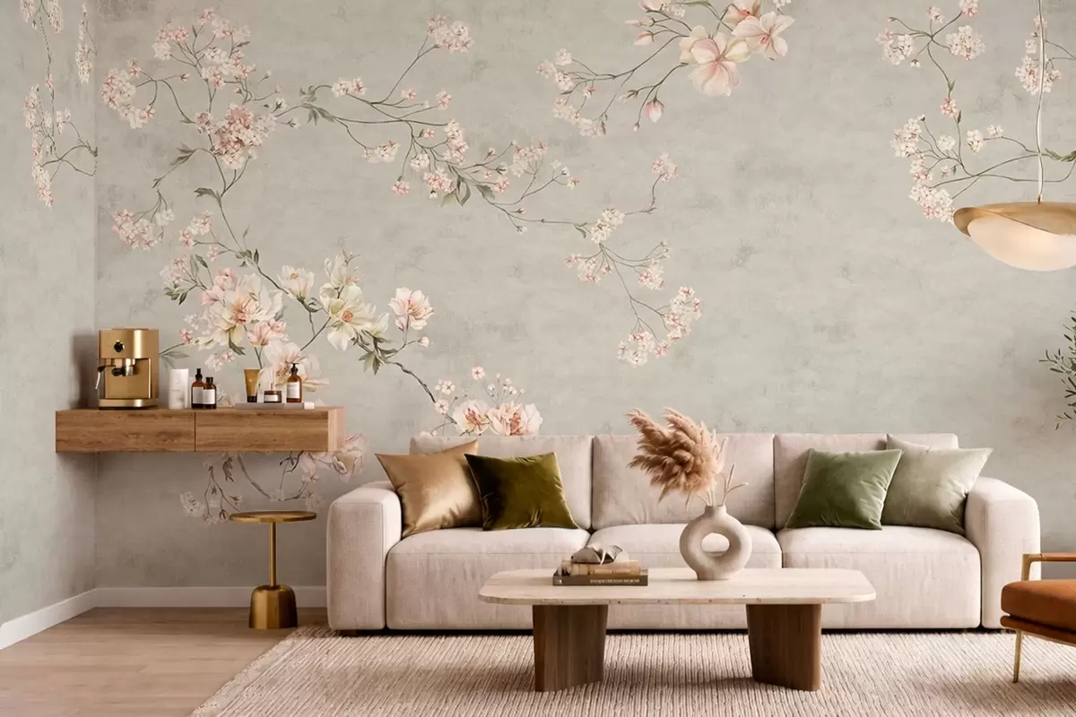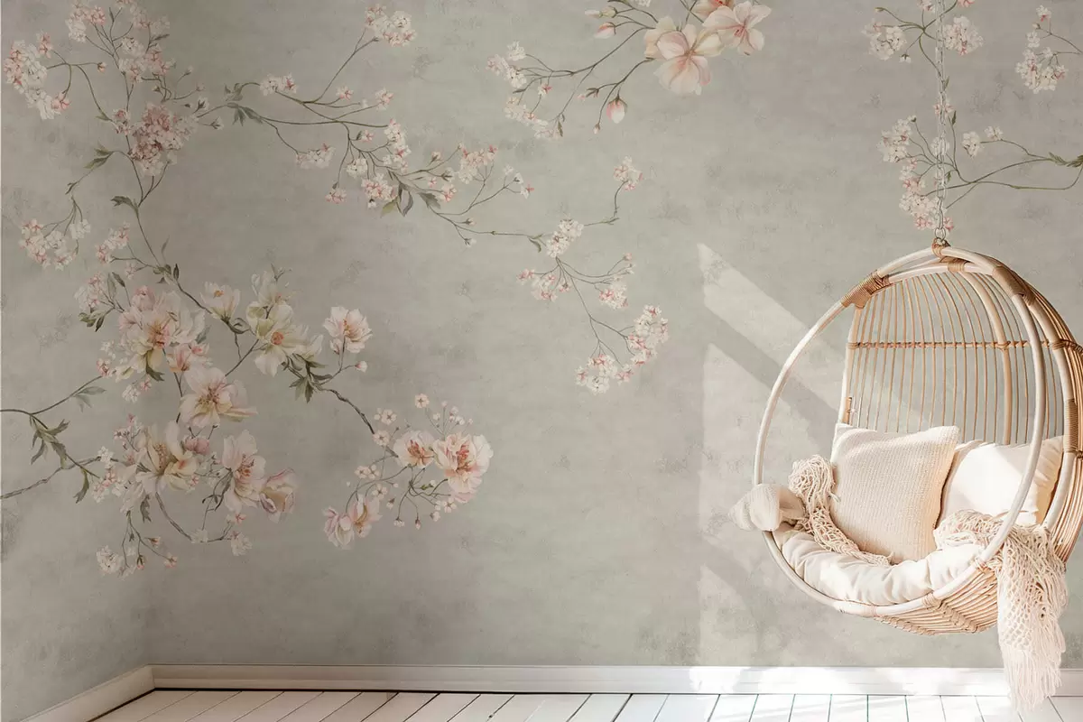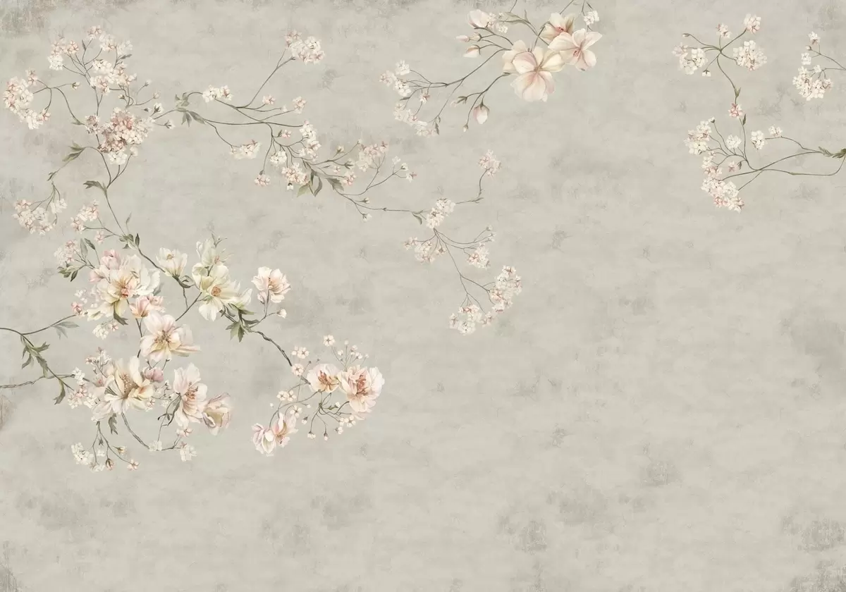 Fototapeten Blütenzweige im Chinoiserie-Stil auf grauem Hintergrund Nr. w05427v1