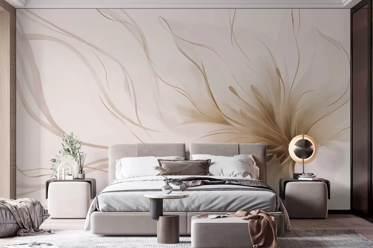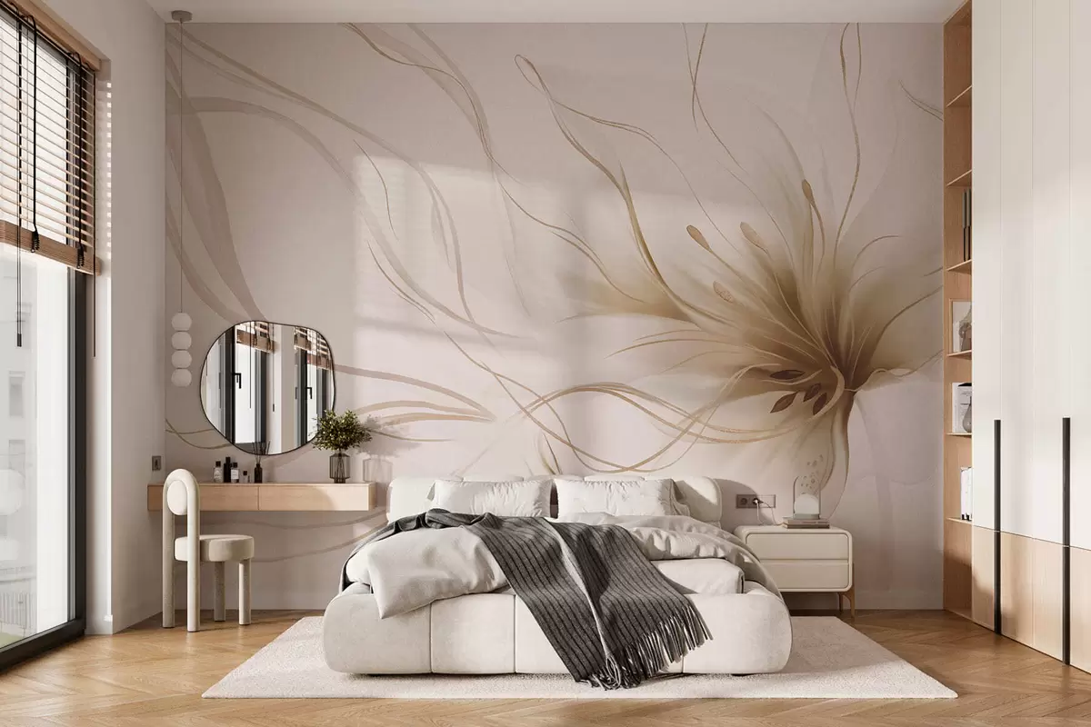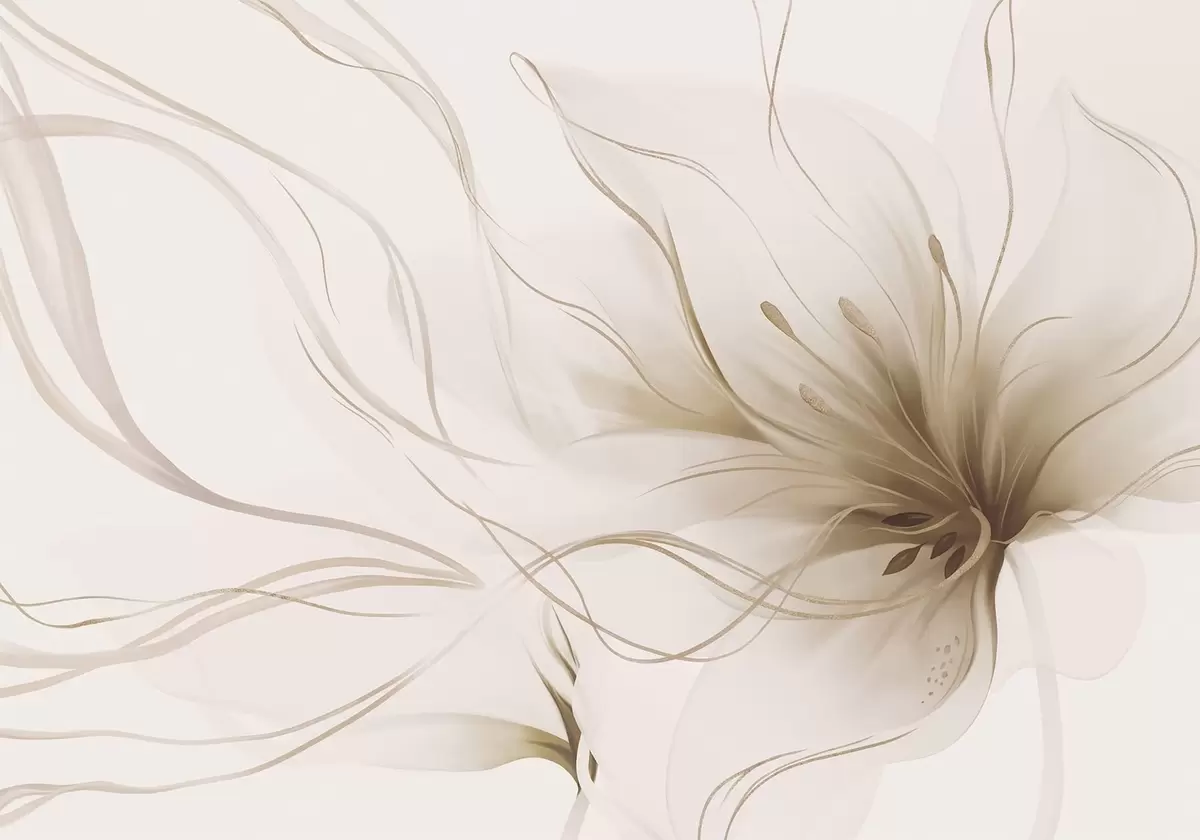 Fototapeten Eine abstrakte beigefarbene Blume mit fließenden Linien im Fluid-Art-Stil Nr. w05428v2