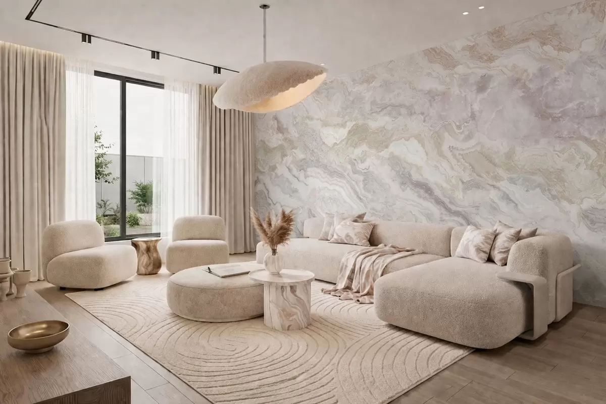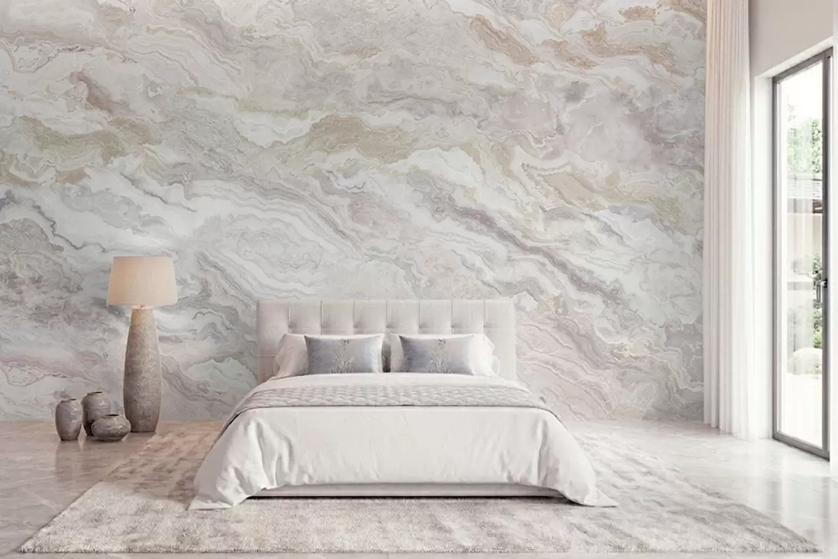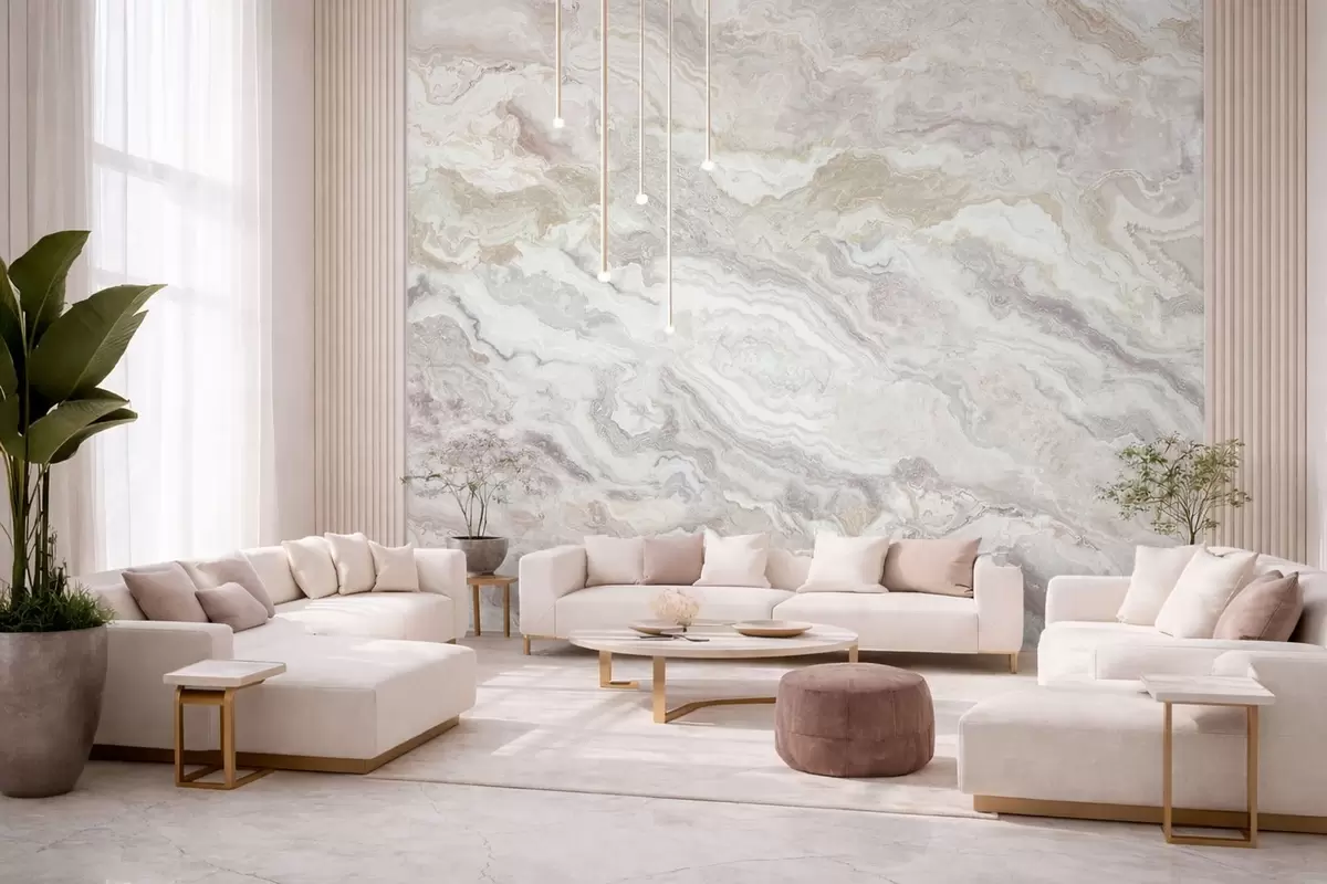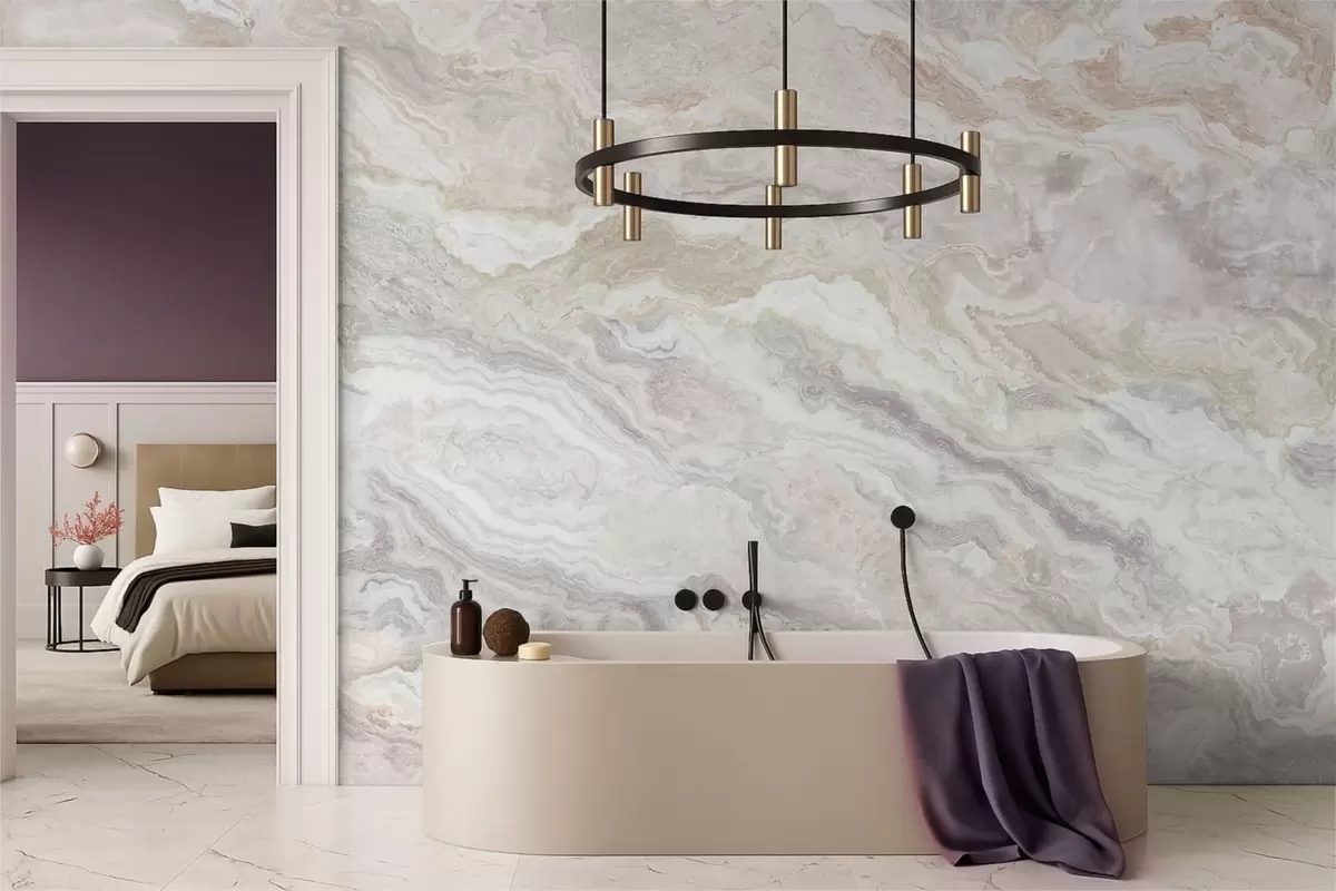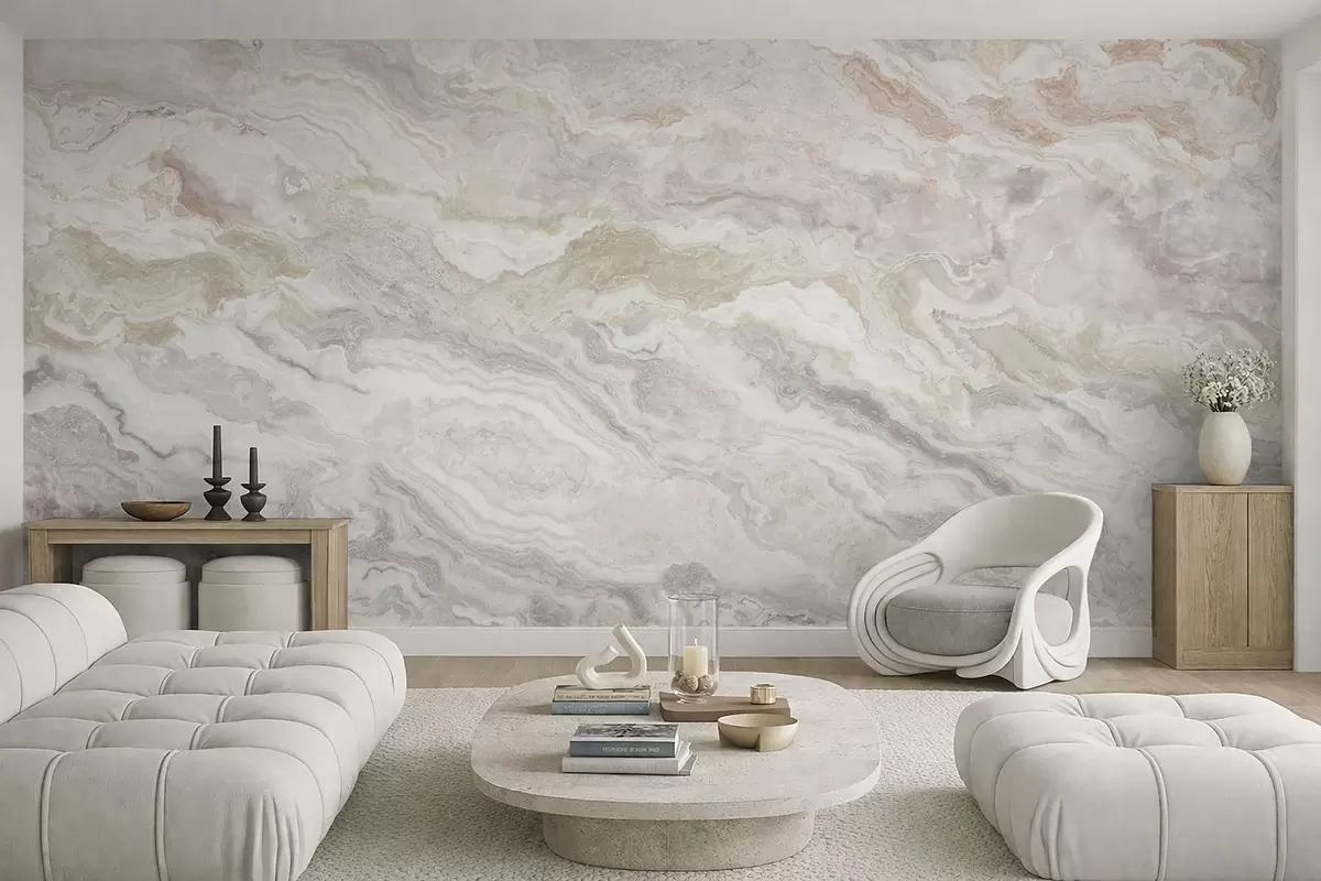 Fototapeten Heller Onyx mit fließenden Schichten in Beige und Grau Nr. w05430