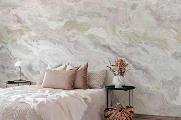 Fototapeten Heller Onyx mit fließenden Schichten in Beige und Grau Nr. w05430