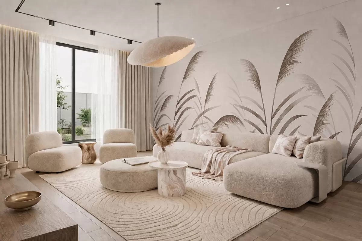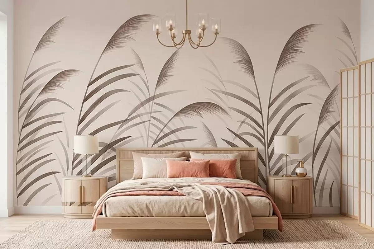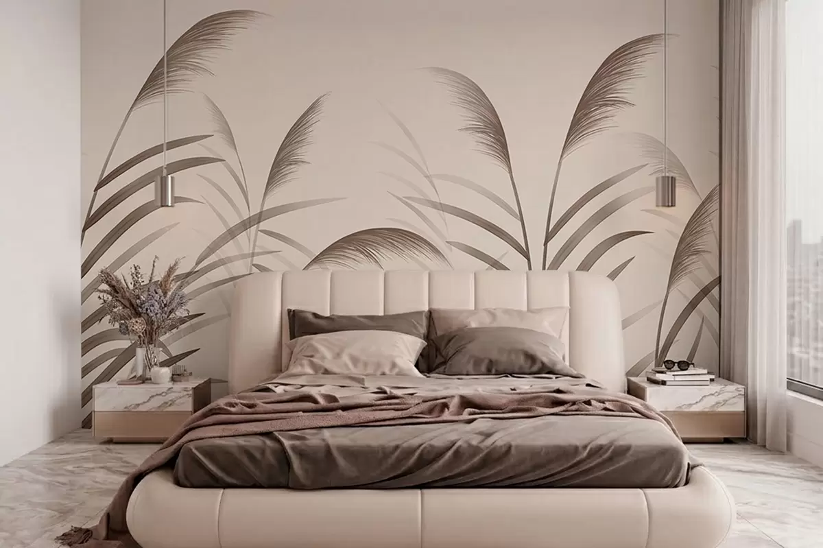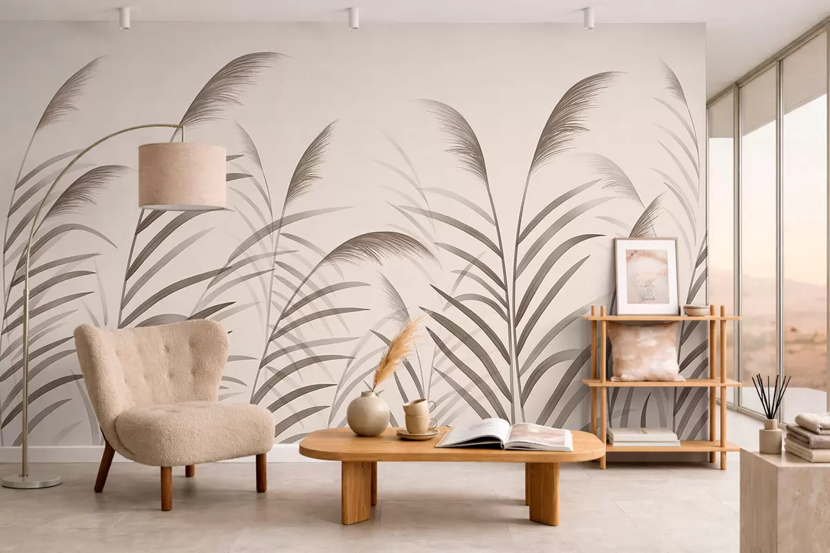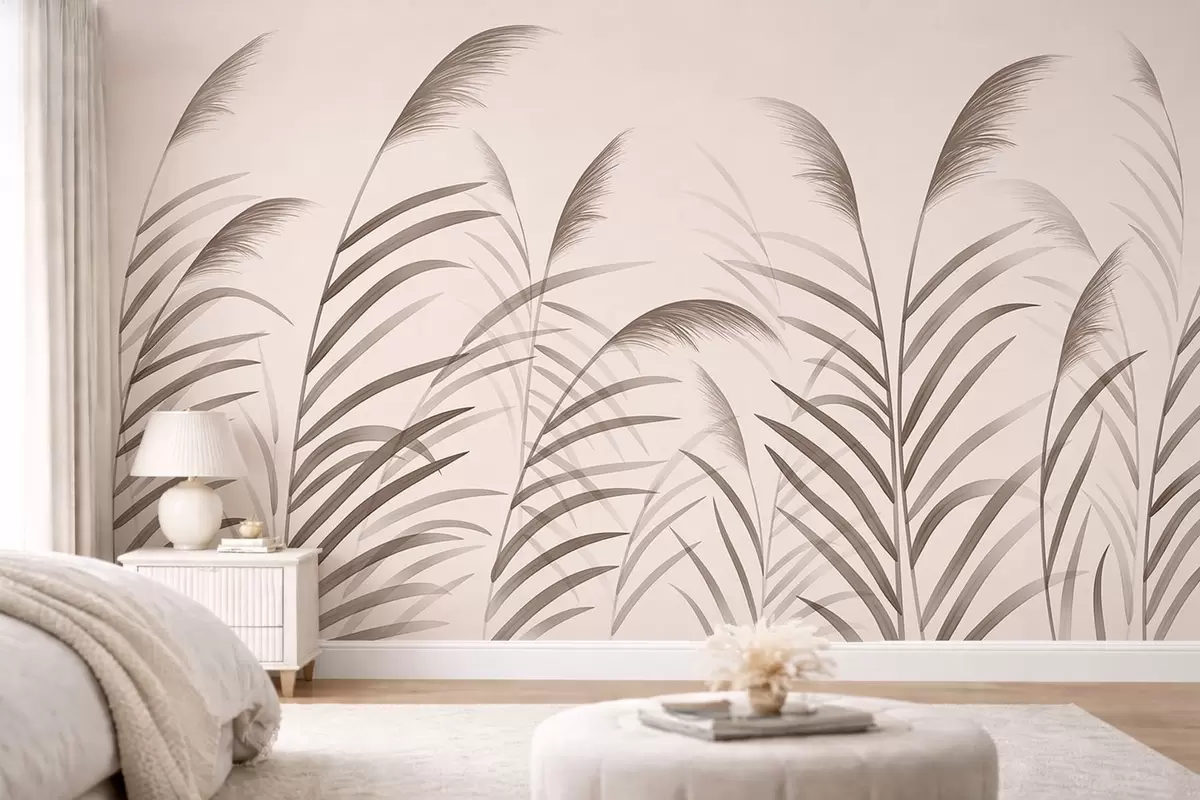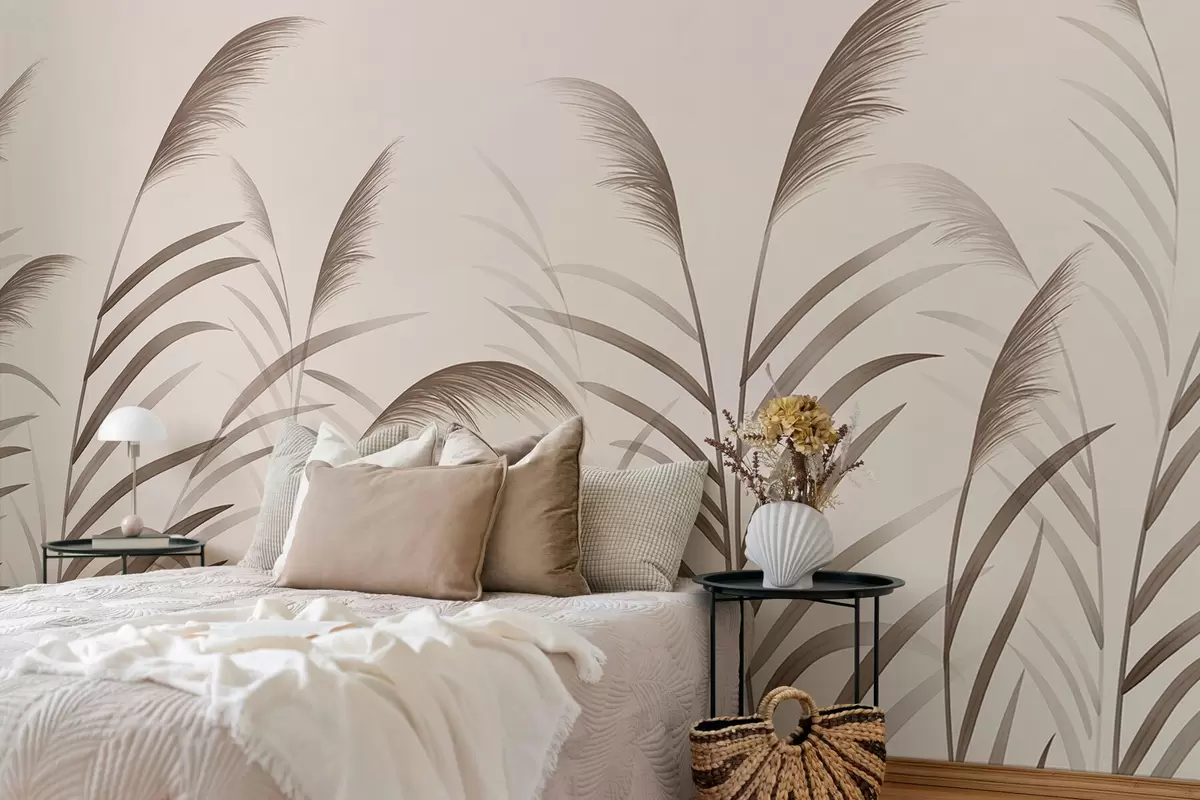 Fototapeten Minimalistische Schilfsilhouetten in Beigetönen Nr. w05432