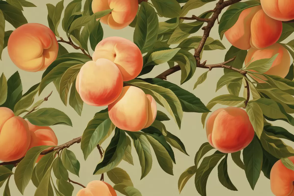Fototapeten Reife Pfirsiche an den Zweigen Nr. w05444