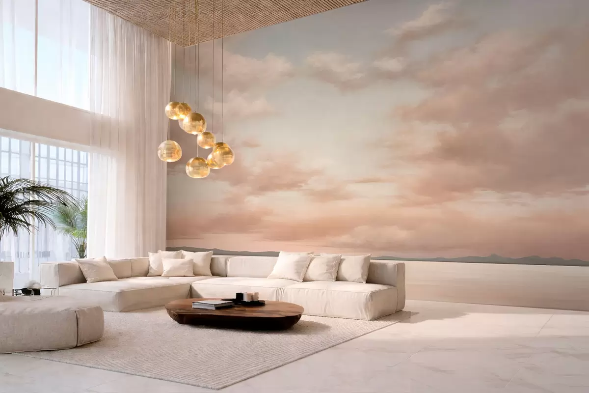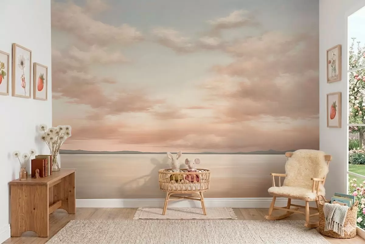 Fototapeten Minimalistischer Meereshorizont mit pastellfarbenen Wolken Nr. w05516