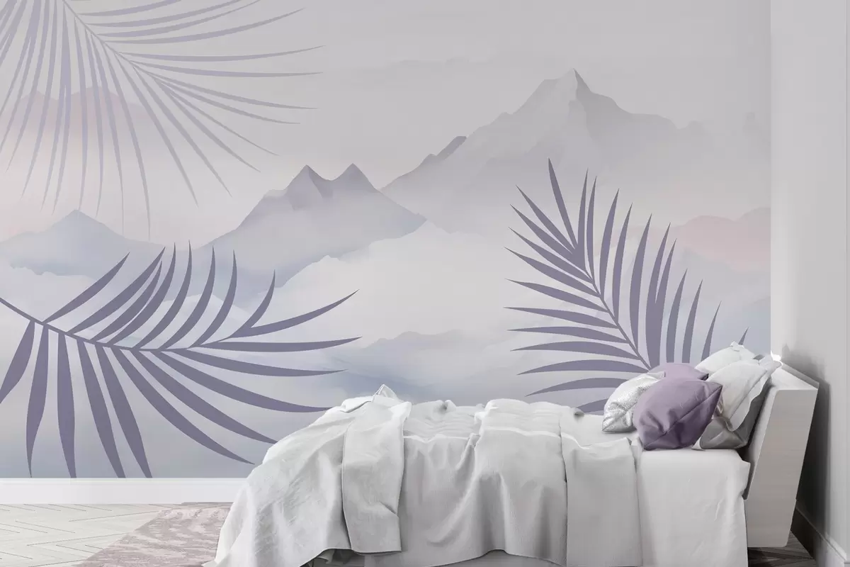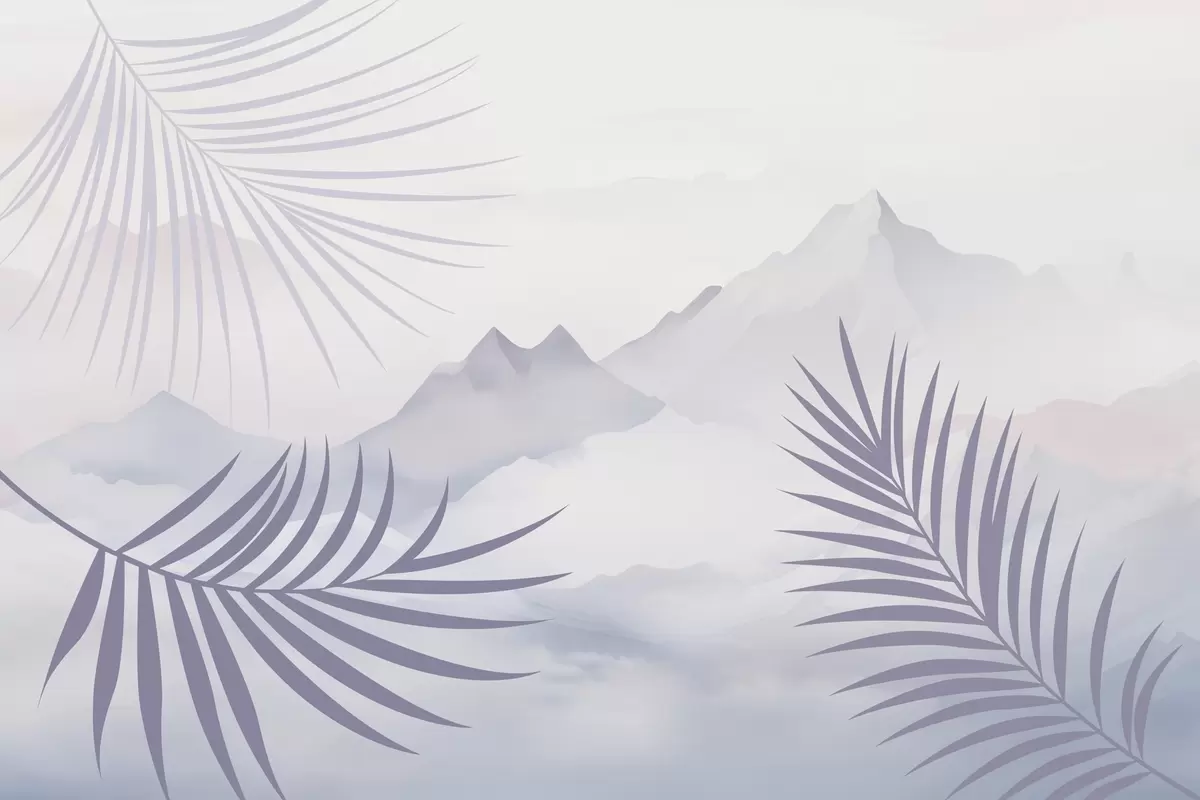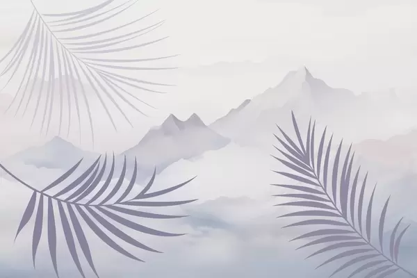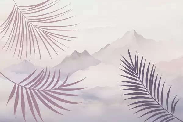 Fototapeten Palmblätter vor dem Hintergrund der Berge Nr. w05548