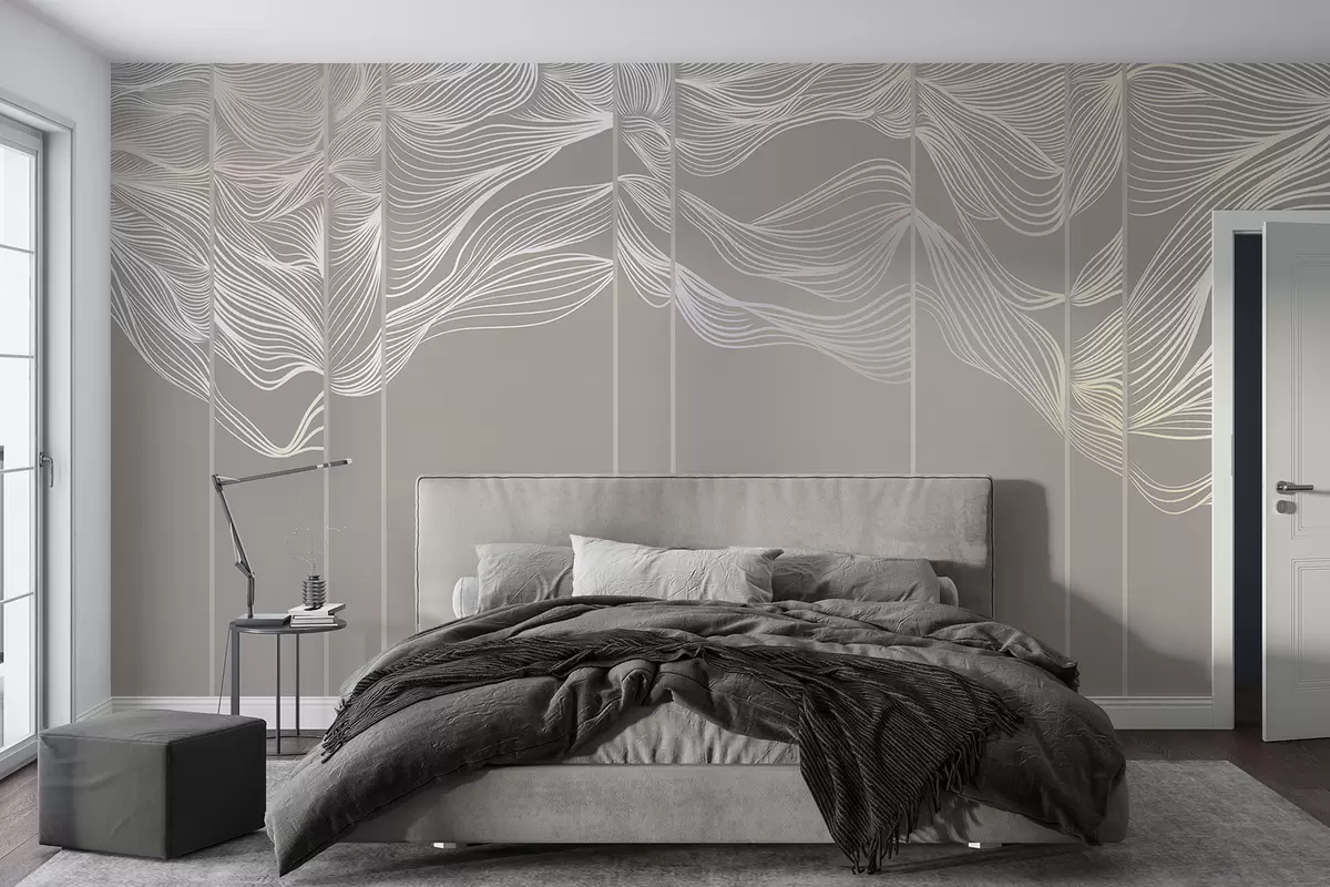Fototapeten Fließende weiße abstrakte Linie Wellen gegen einen hellbraunen Hintergrund Nr. w08263