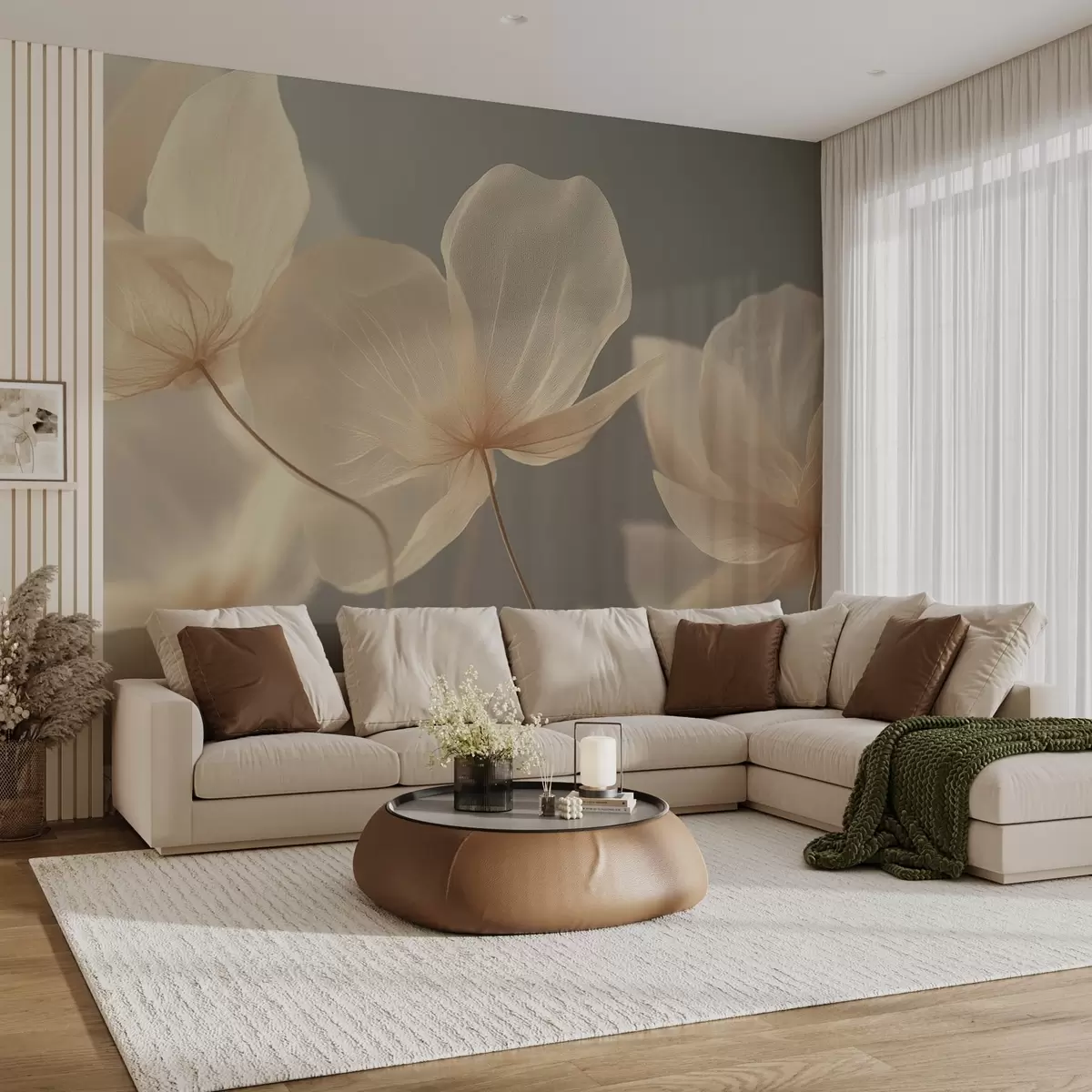 Fototapeten Lotusblüten, eine zarte Komposition mit grauem Hintergrund Nr. w08500v2