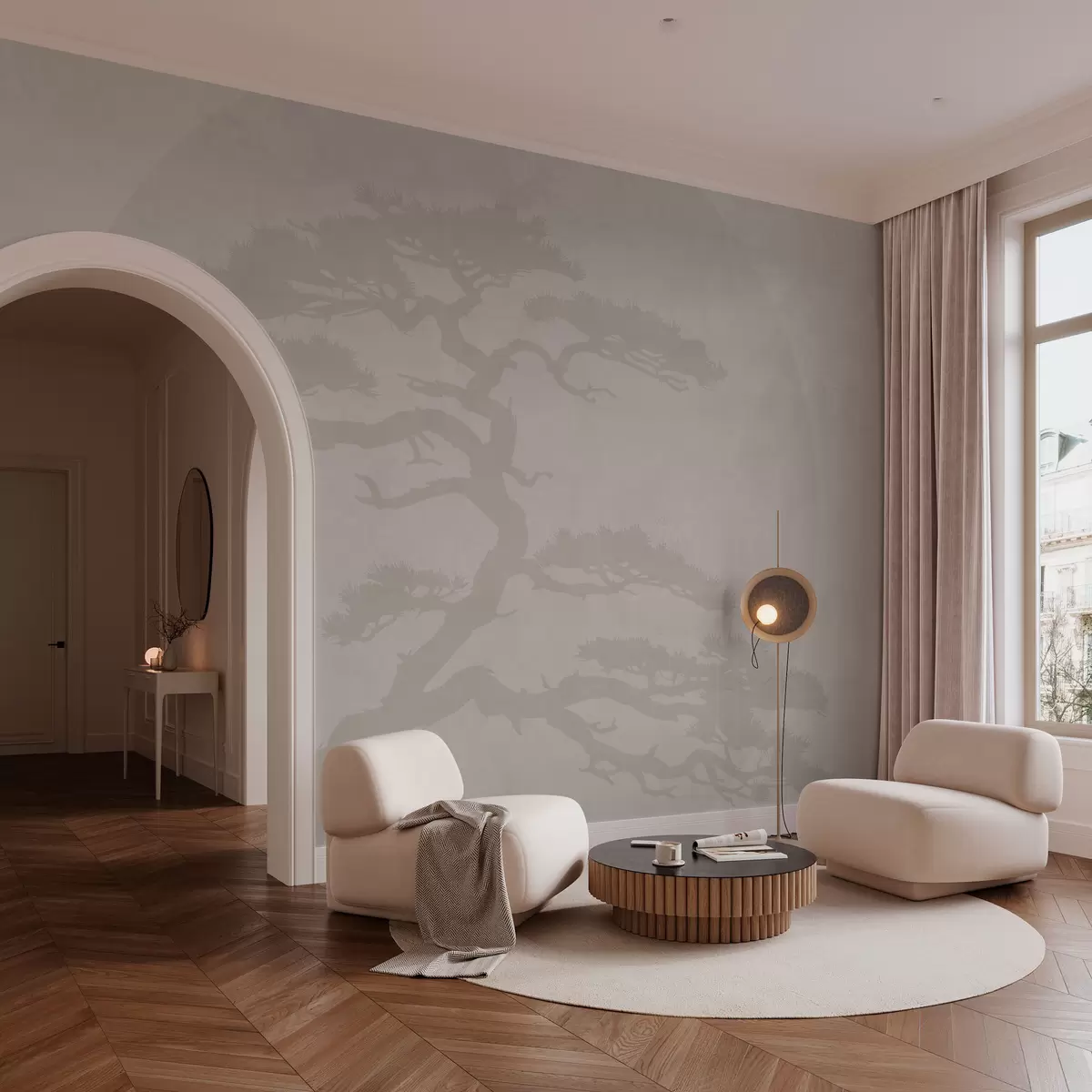 Fototapeten Japanischer Bonsaibaum und Geometrie Grunge-Hintergrund Nr. w08554v1