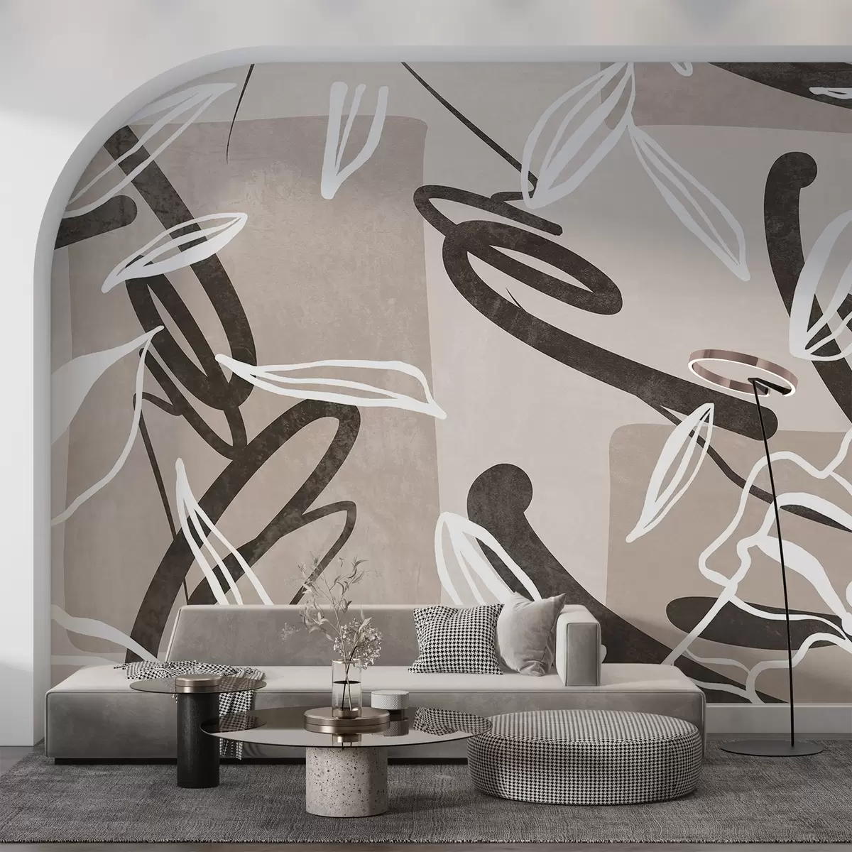 Fototapeten Abstraktes, strukturiertes, modernes und minimalistisches Design mit floralen Elementen in einer neutralen beigen Farbpalette Nr. w08888