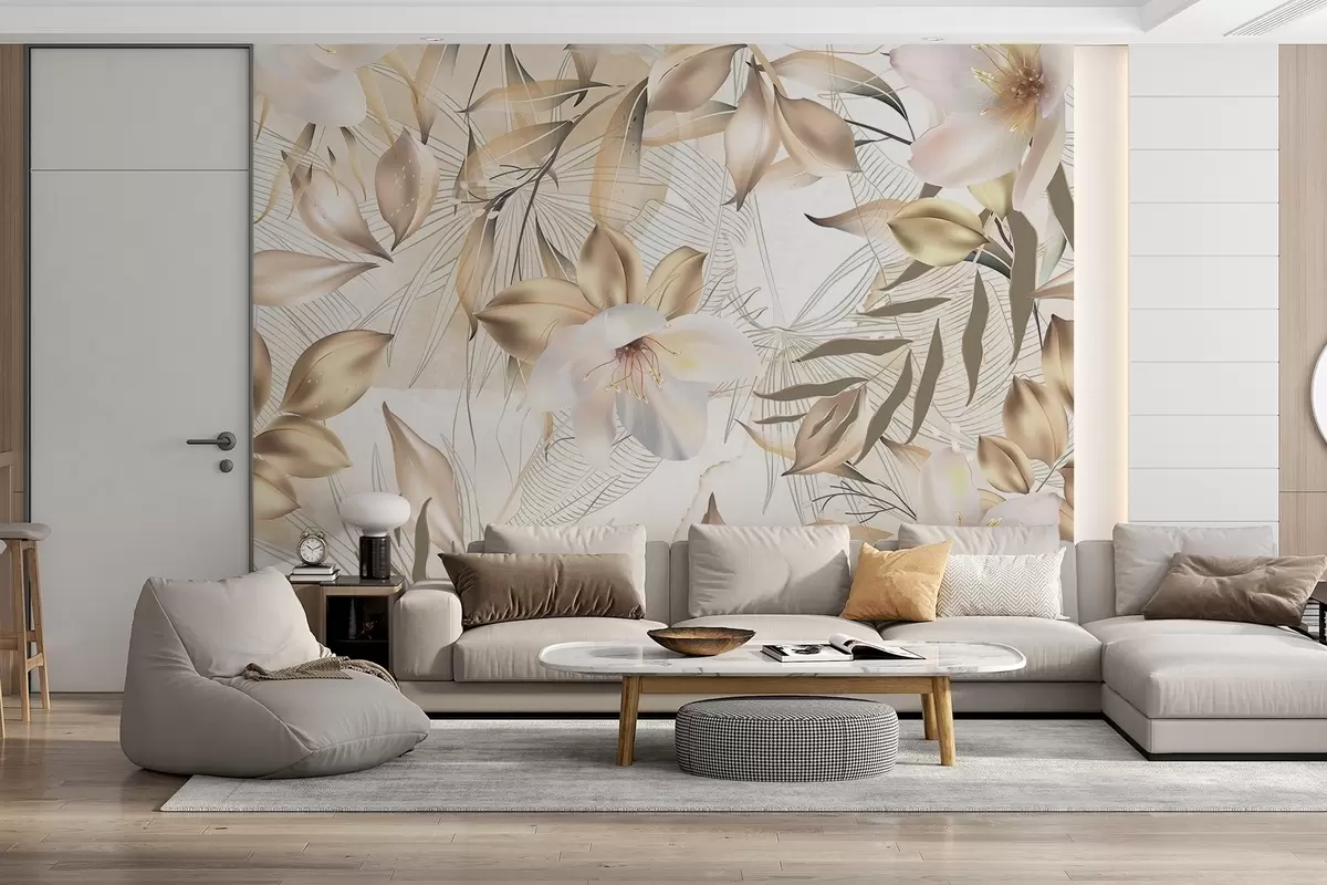 Fototapeten Jasminblüten und Blätter, weiche Farben, botanische Illustration, floraler Hintergrund, elegantes Design, zarte Blütenblätter Nr. w08977