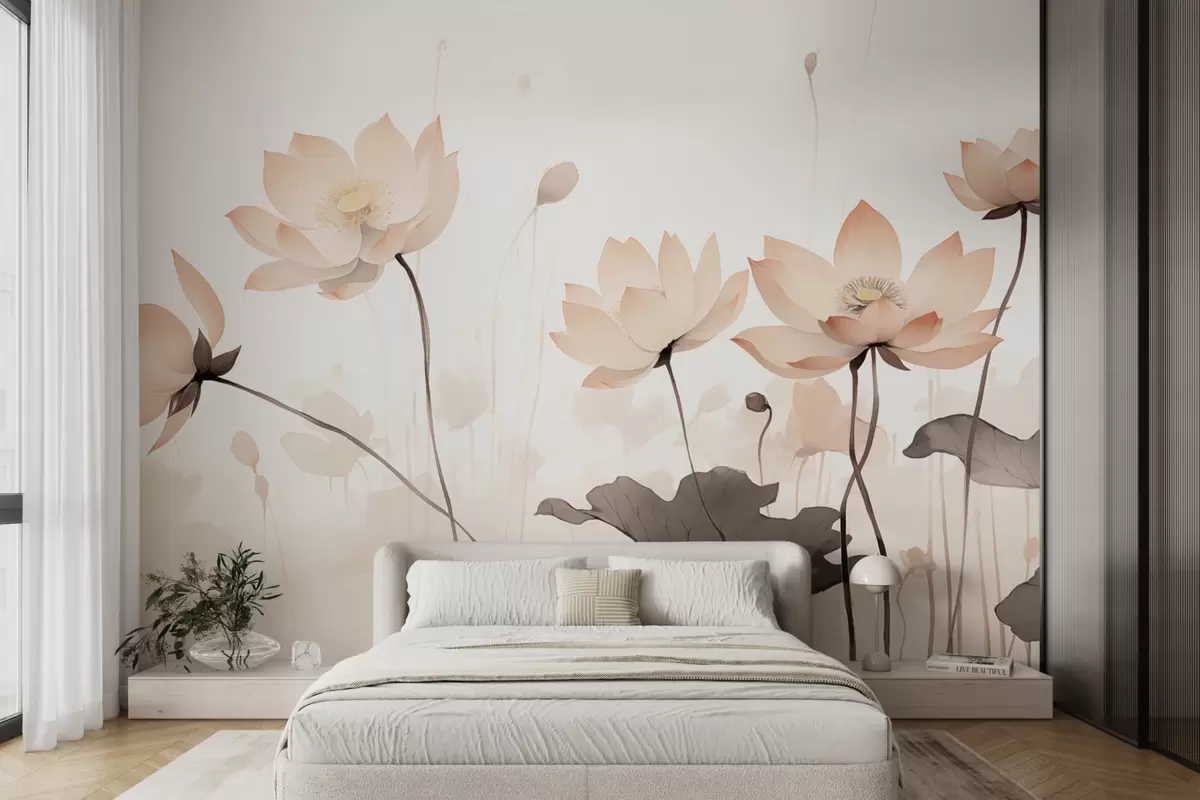 Fototapeten Seerosen in zarten hellen Tönen im Aquarellstil Nr. w09035