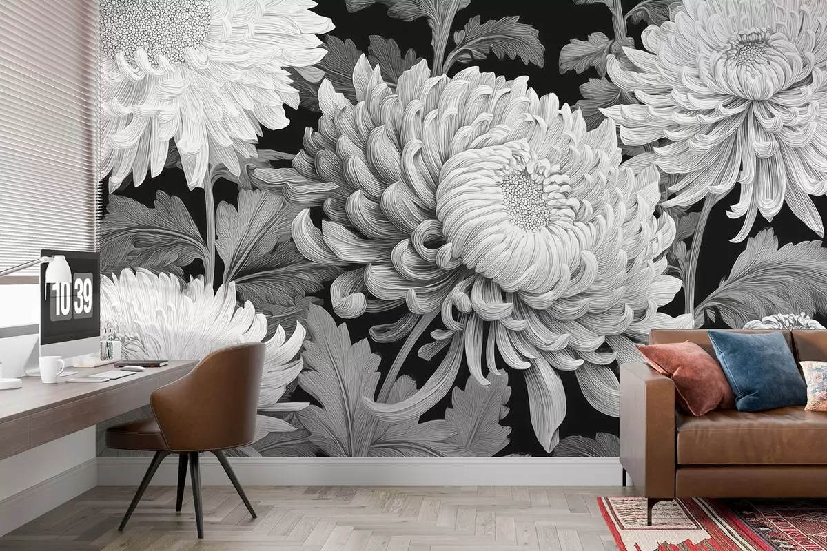 Fototapeten Schwarze und weiße große Orchideen mit Blättern Nr. w09125v1