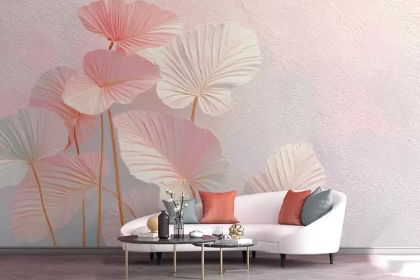 Fototapeten Elegante große tropische Blätter in zarten rosa und blauen Farbtönen Nr. w09252