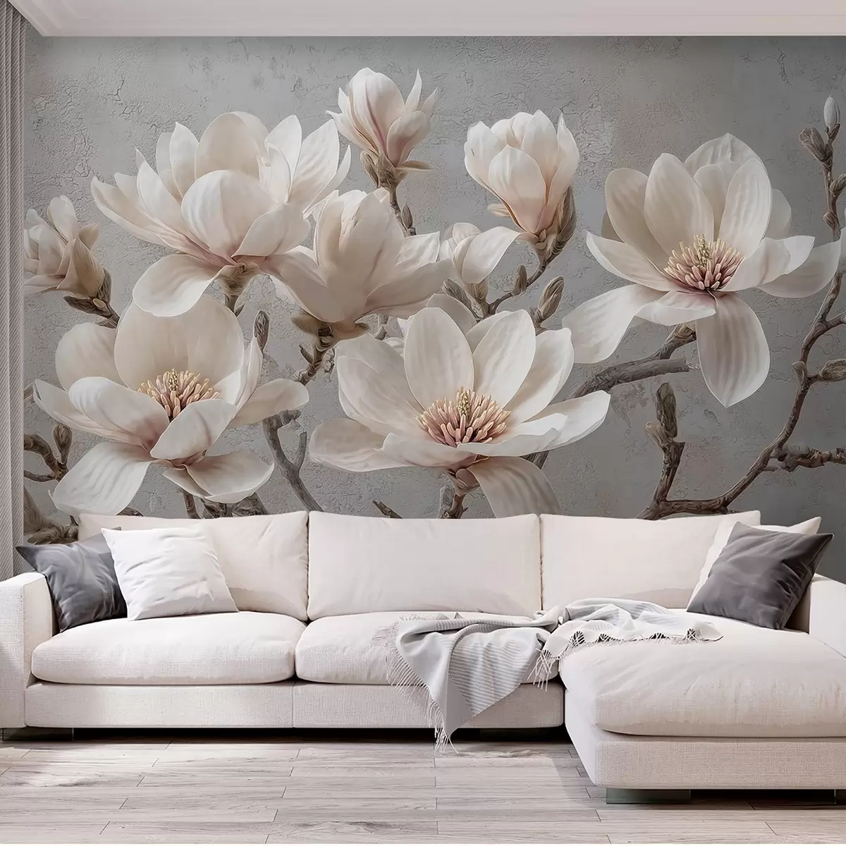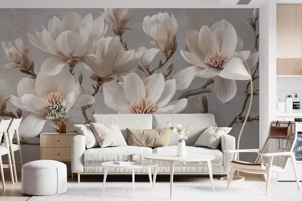 Fototapeten Magnolienzweige mit großen hellen Blüten in gedeckten Tönen Nr. w09305