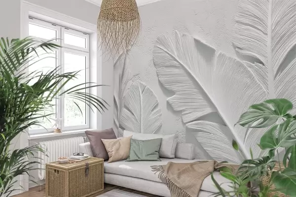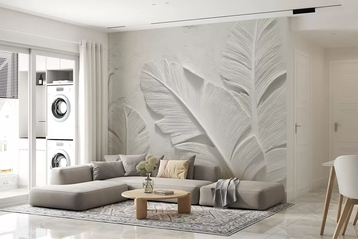 Fototapeten Texturierte graue Blätter auf einem Hintergrund mit Kunstgipsrelief Nr. w09307