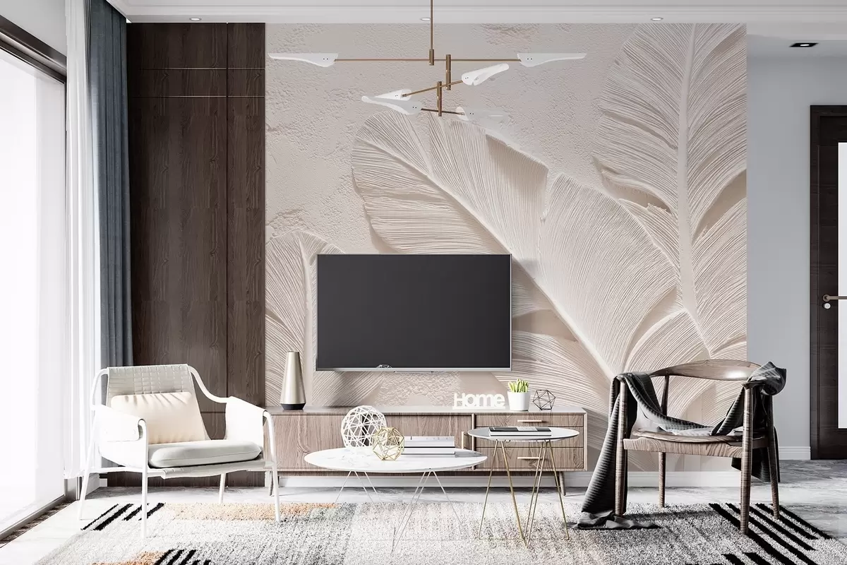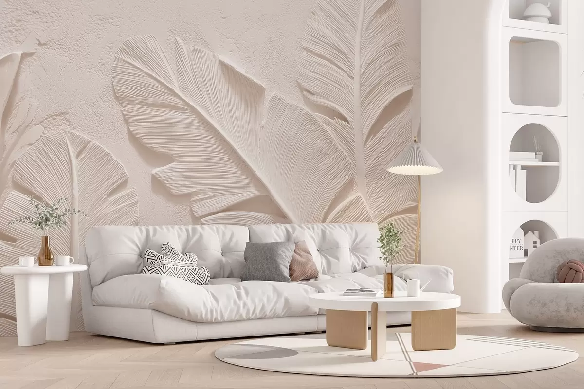 Fototapeten Reliefblätter in warmen Beige-Sand-Tönen Nr. w09307v1