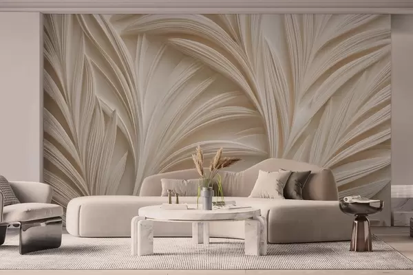 Fototapeten Dekorative beige Blätter im 3D-Stil Nr. w09351