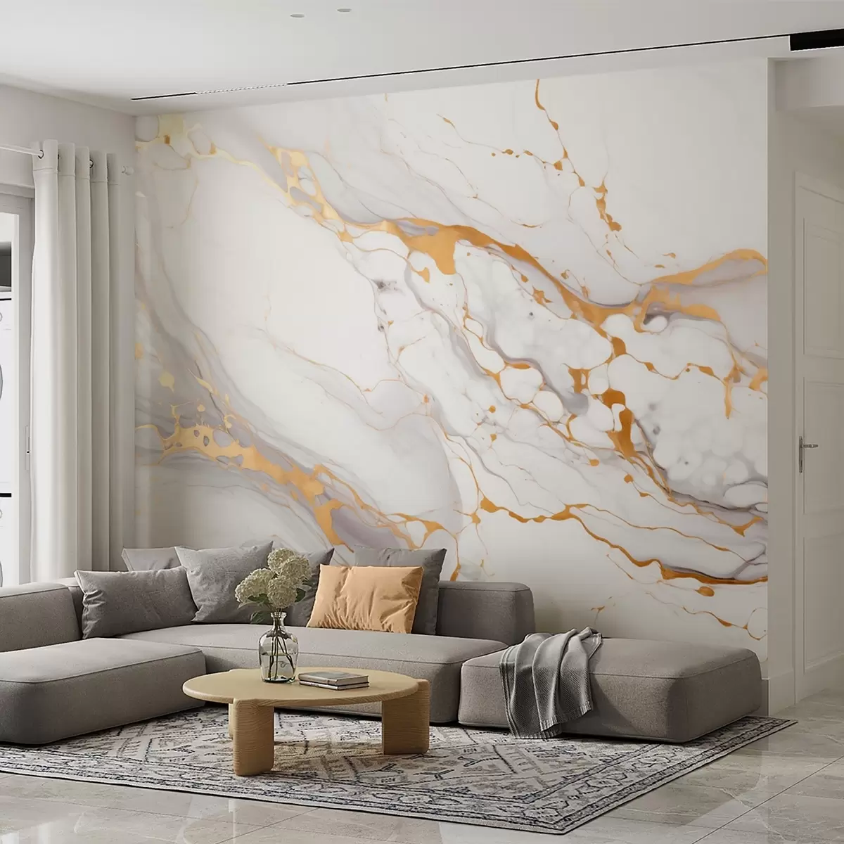 Fototapeten Nachahmung einer Marmorstruktur mit weichen grauen Übergängen und gelben Akzenten Nr. w09362