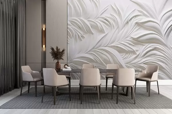 Fototapeten Abstrakte, strukturierte weiße Blätter und florale Elemente, minimalistische Ästhetik Nr. w09378