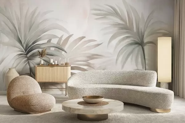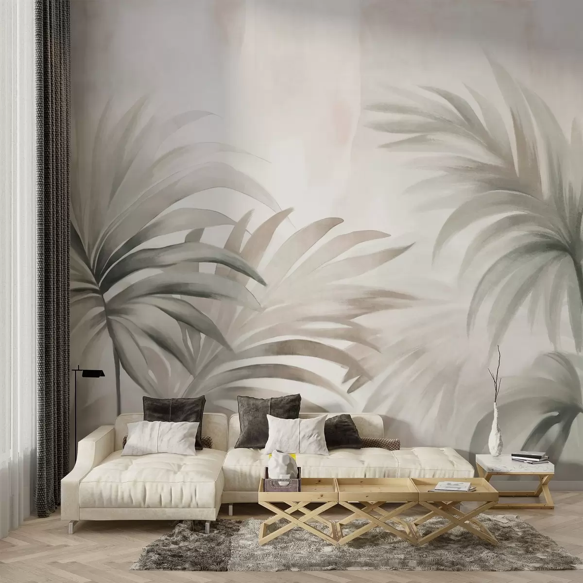 Fototapeten Palme strukturierte Blätter in neutralen Farben, beige abstrakten Hintergrund, weiche Pinselstriche, tropischen strukturierten Laub Nr. w09380