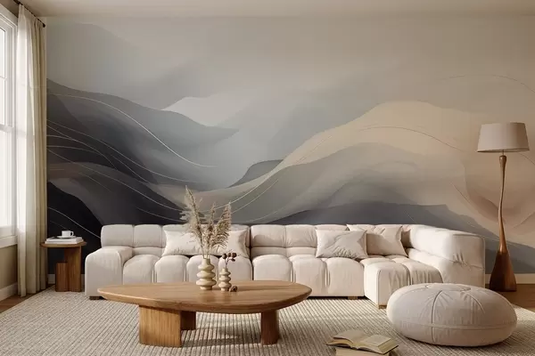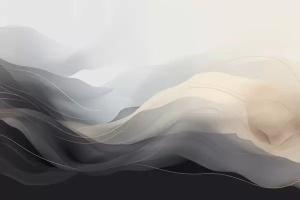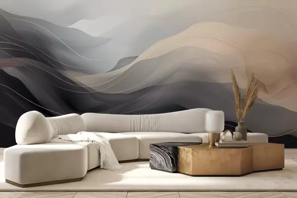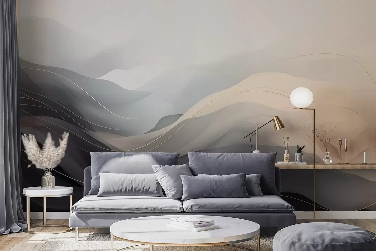 Fototapeten Abstrakte, neblige Wellen in Grau-Creme-Tönen mit gelben Linien Nr. w09504