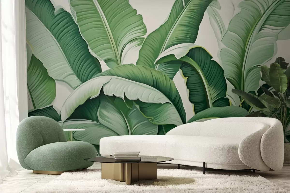 Fototapeten Grüne tropische Bananenblätter mit 3D-Effekt Nr. w09559
