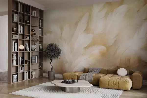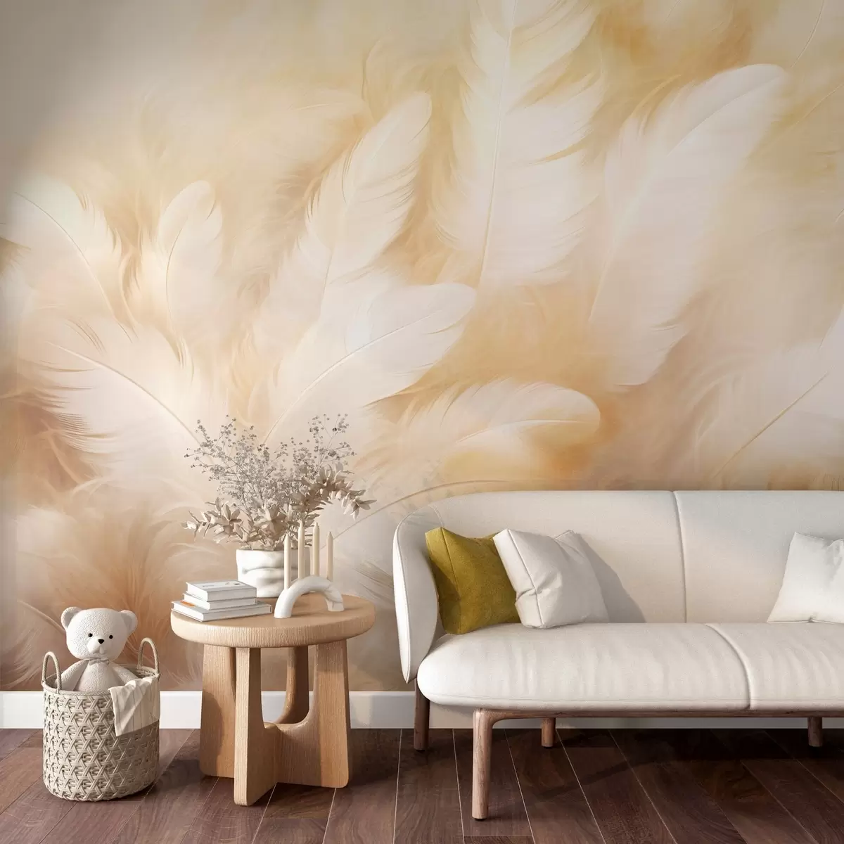 Fototapeten Weiße und gelbe Federn mit weicher Textur Nr. w09606