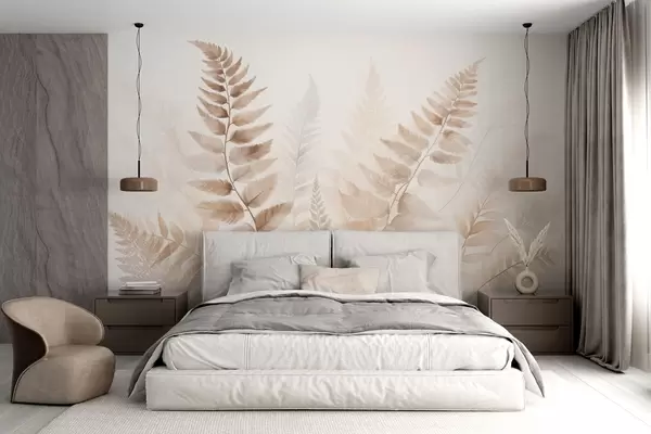 Fototapeten Strukturierte getrocknete Farnwedel in verschiedenen Brauntönen, mit einem weichen, hellen Hintergrund im Aquarellstil Nr. w09615