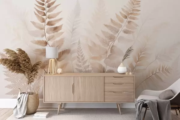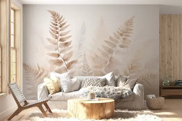 Fototapeten Strukturierte getrocknete Farnwedel in verschiedenen Brauntönen, mit einem weichen, hellen Hintergrund im Aquarellstil Nr. w09615