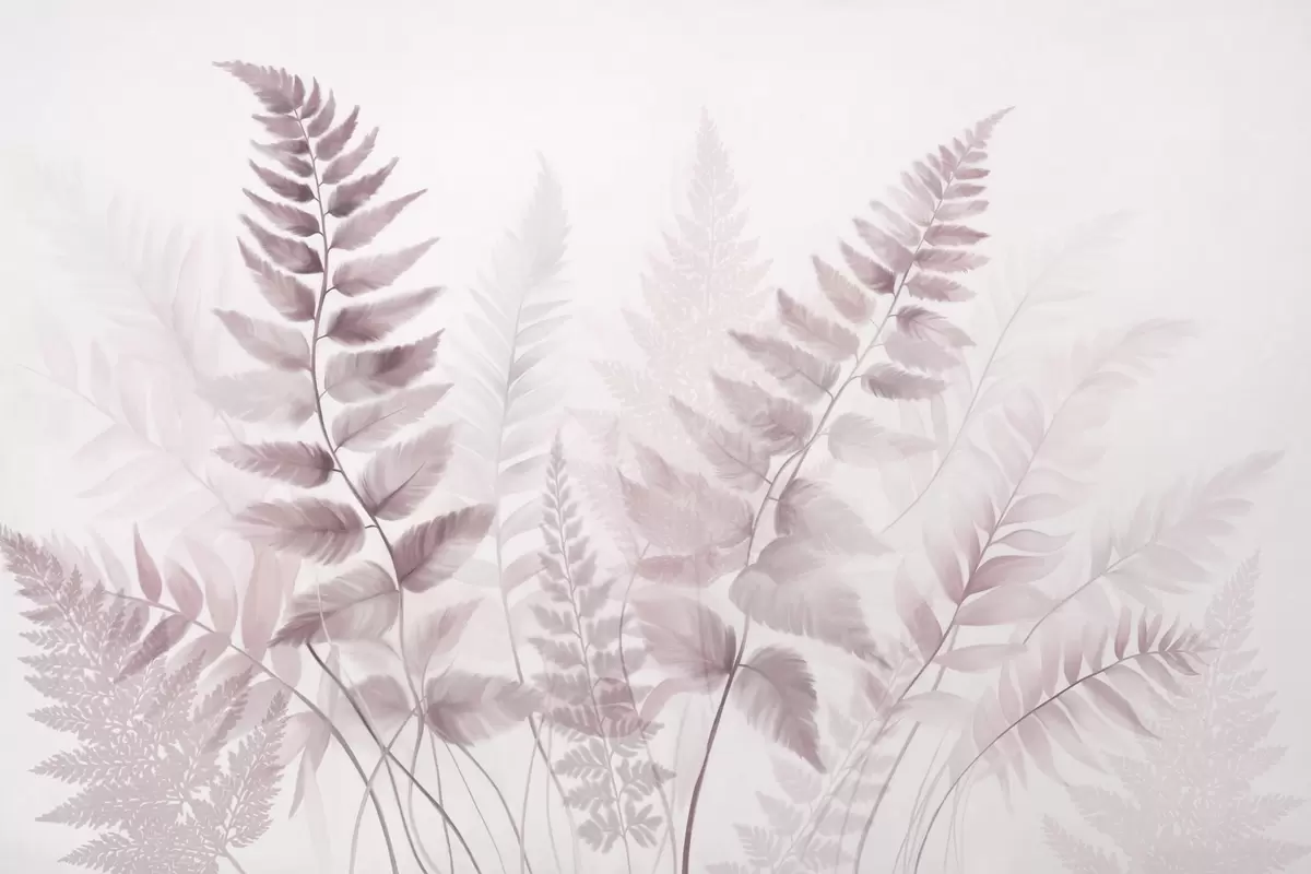 Fototapeten Strukturierte getrocknete Farnwedel in verschiedenen Rosatönen, mit einem weichen, hellen Hintergrund im Aquarellstil Nr. w09615v2