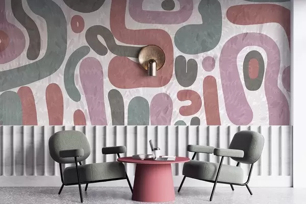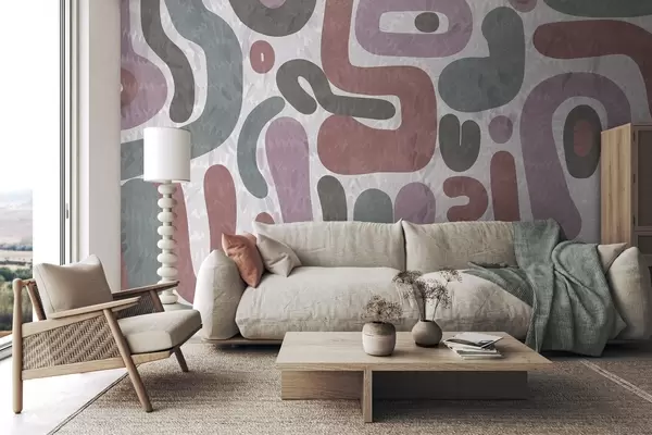 Fototapeten Abstrakte, strukturierte Formen in gedeckten Rosa-, Grün- und Grautönen auf strukturiertem Hintergrund – moderne Kunst Nr. w09622
