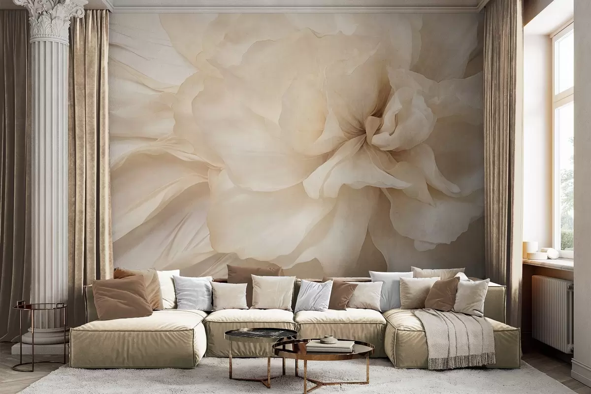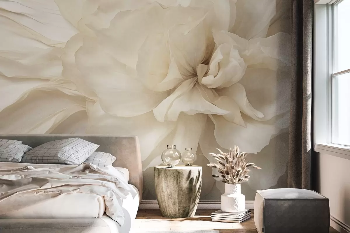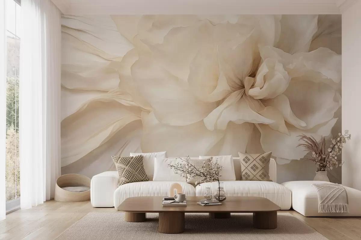 Fototapeten Zarte, helle Blume mit strukturierten, durchscheinenden Blütenblättern und weichem, abstraktem Hintergrund Nr. w09632